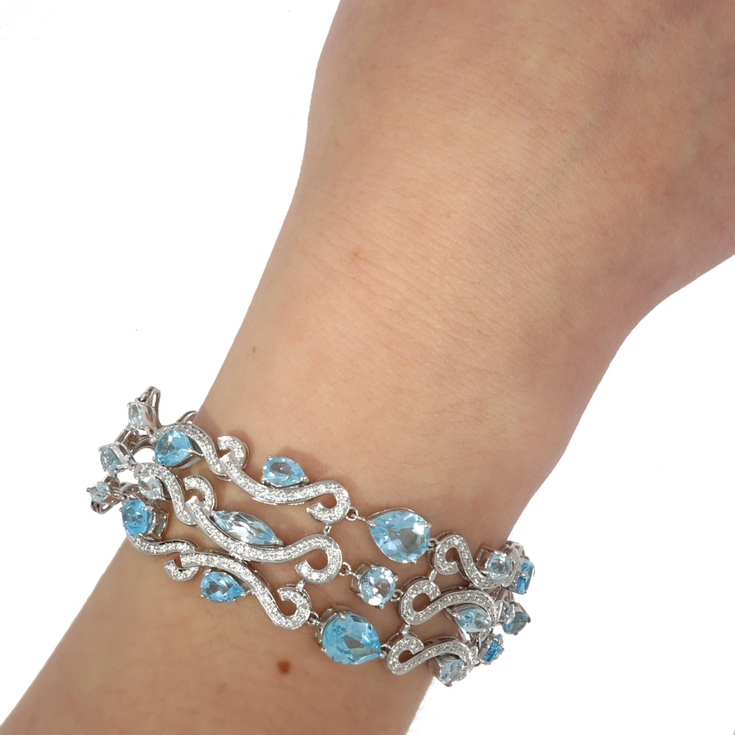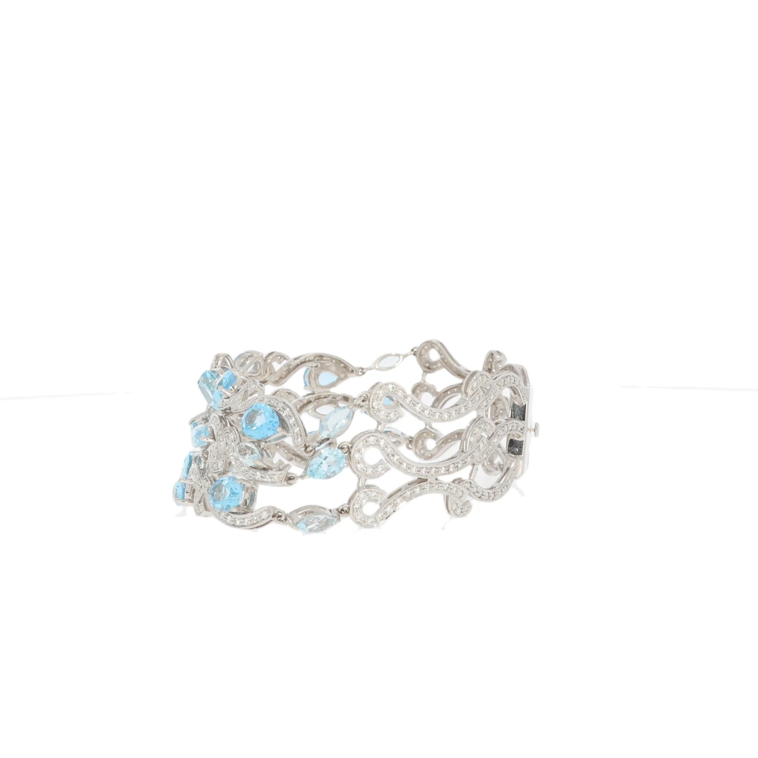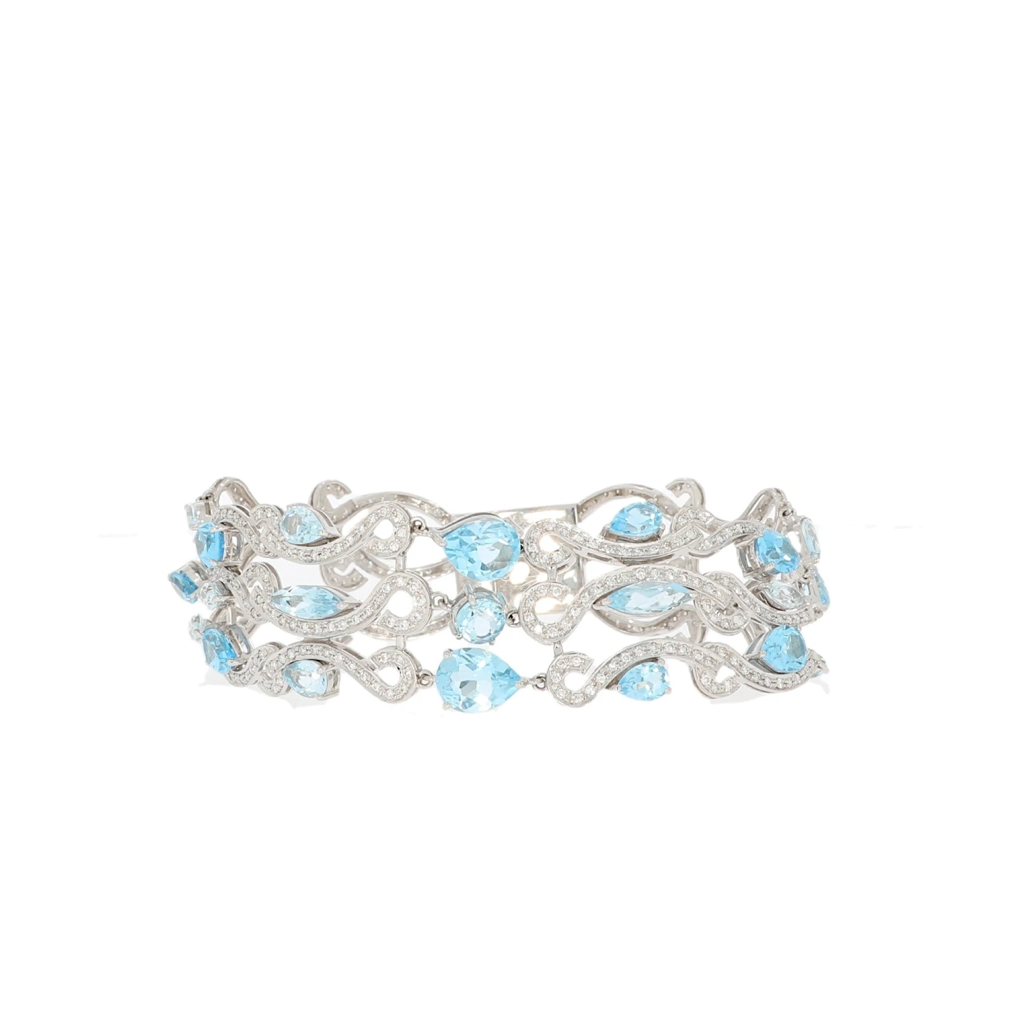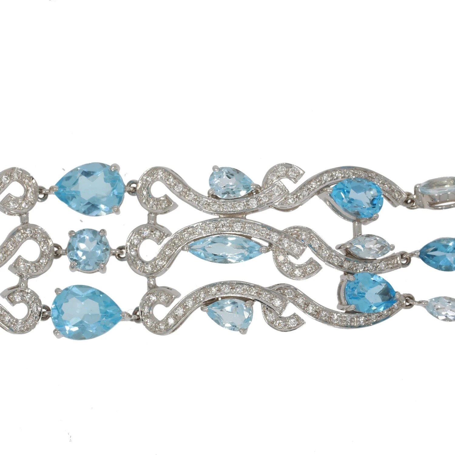 We guarantee this is an authentic 585 white gold bracelet set with pear and marquise-cut topazes alternating with brilliant-cut diamonds or 100%% of your money back