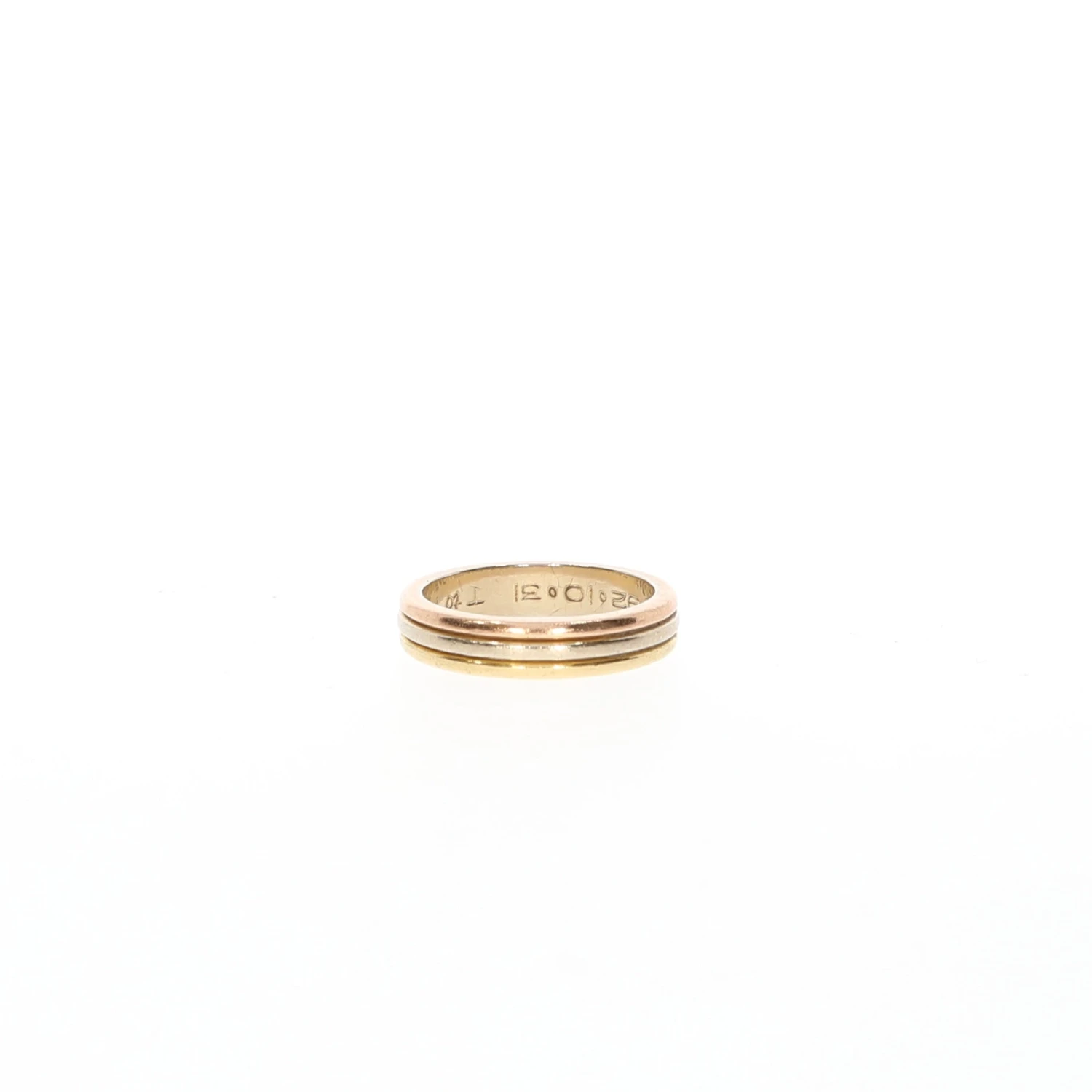 This very chic ring is finely crafted of 18K yellow, pink and white gold