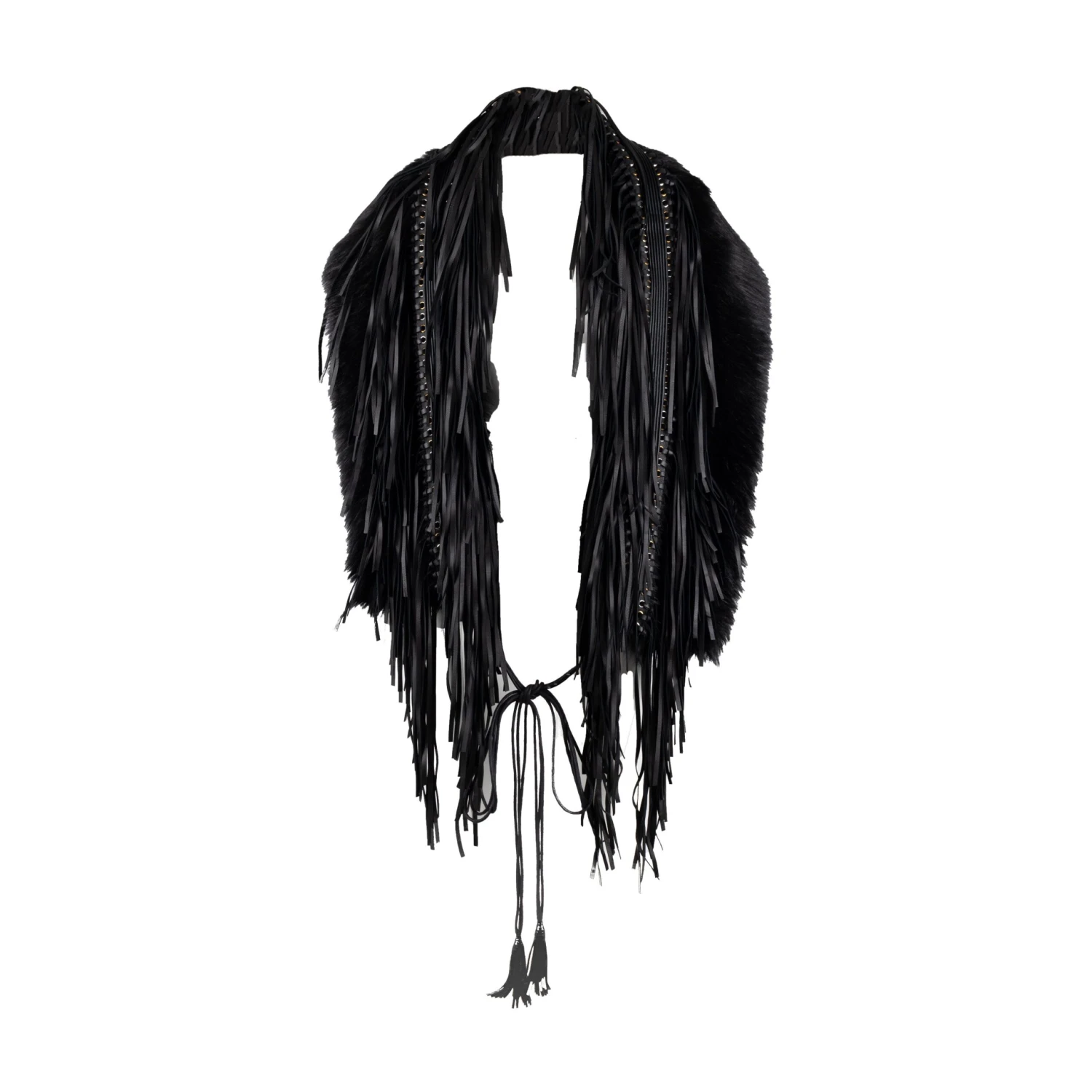 This Collection Privee Faux Fur Scarf is a handcrafted unique piece, featuring faux fur with detailing of studs and leather fringes.