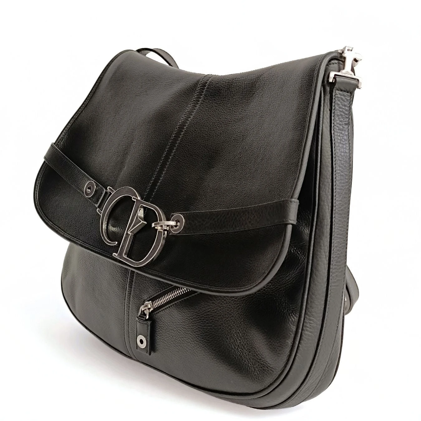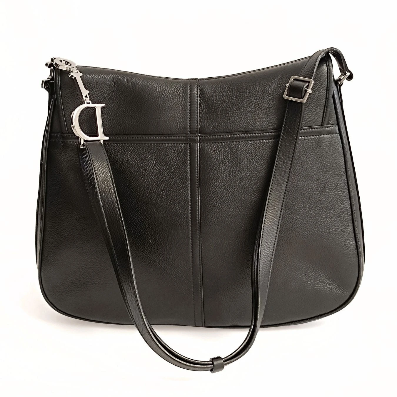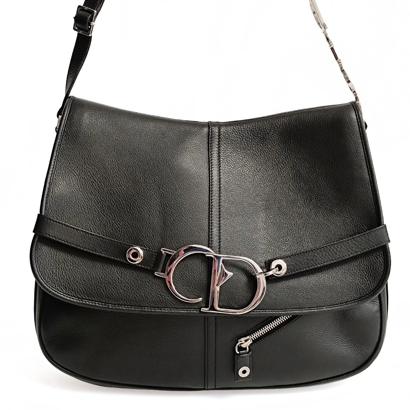 Dior Saddle large shoulder bag in black leather.Coming from store display, it has never been used.Steel finishes.The shoulder strap is adjustable and is decorated with metal Dior writing.Canvas interior with a zip pocket.It has some imperceptible scratches due to storage, but it is like new.Complete with dust bag and box.DIMENSIONS: L: 36 cm – H: 27 cm – W: 6 cmAll our items are selected, carefully sanitized and authenticated by our experts.CODE: 5690B538BRAND: ChanelMADE IN: ItalyAUTHENTICITY CODE: 131BM1014Black colourMATERIAL: LeatherCONDITION: Excellent
