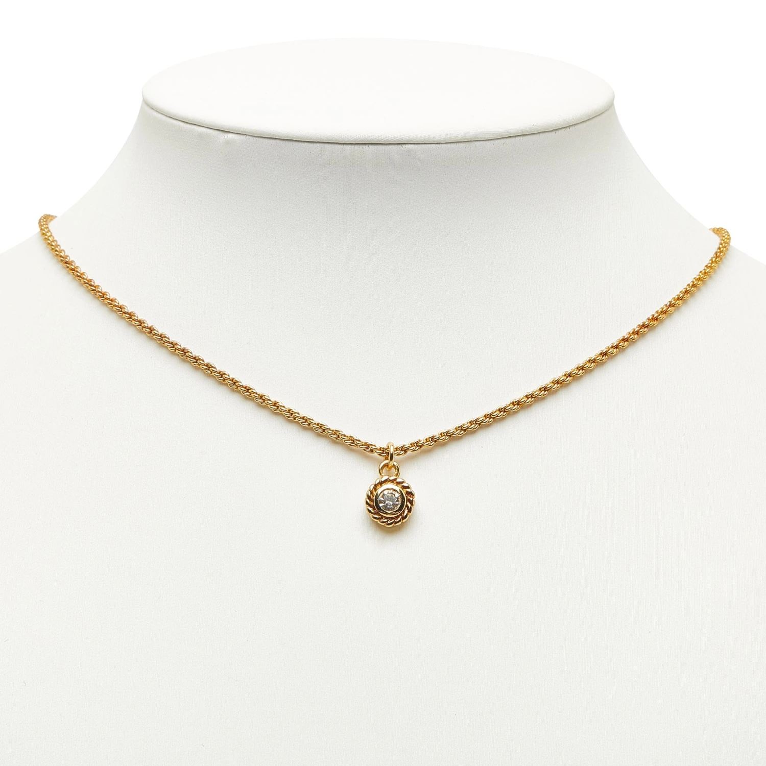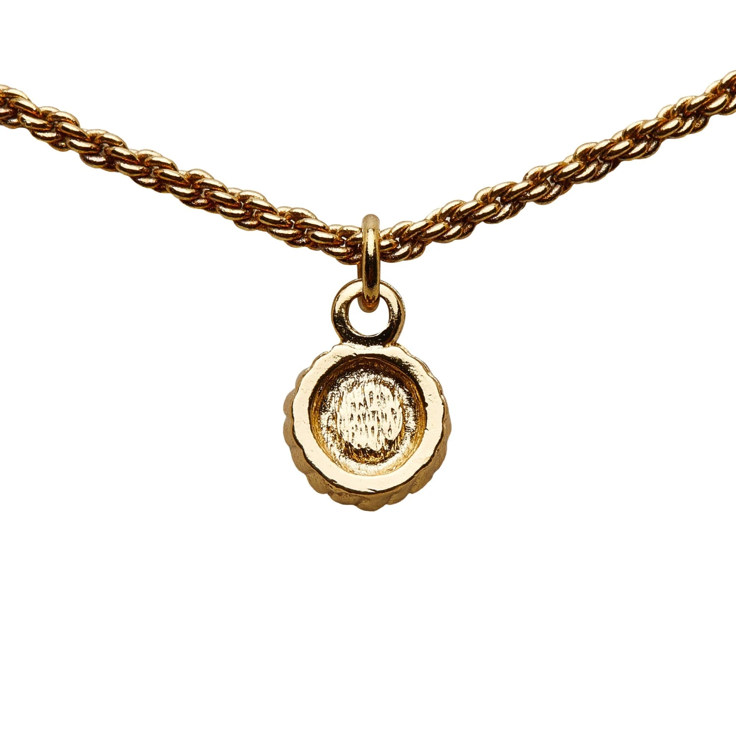 This necklace features a gold-tone pendant, a gold-tone chain, and a lobster claw closure.