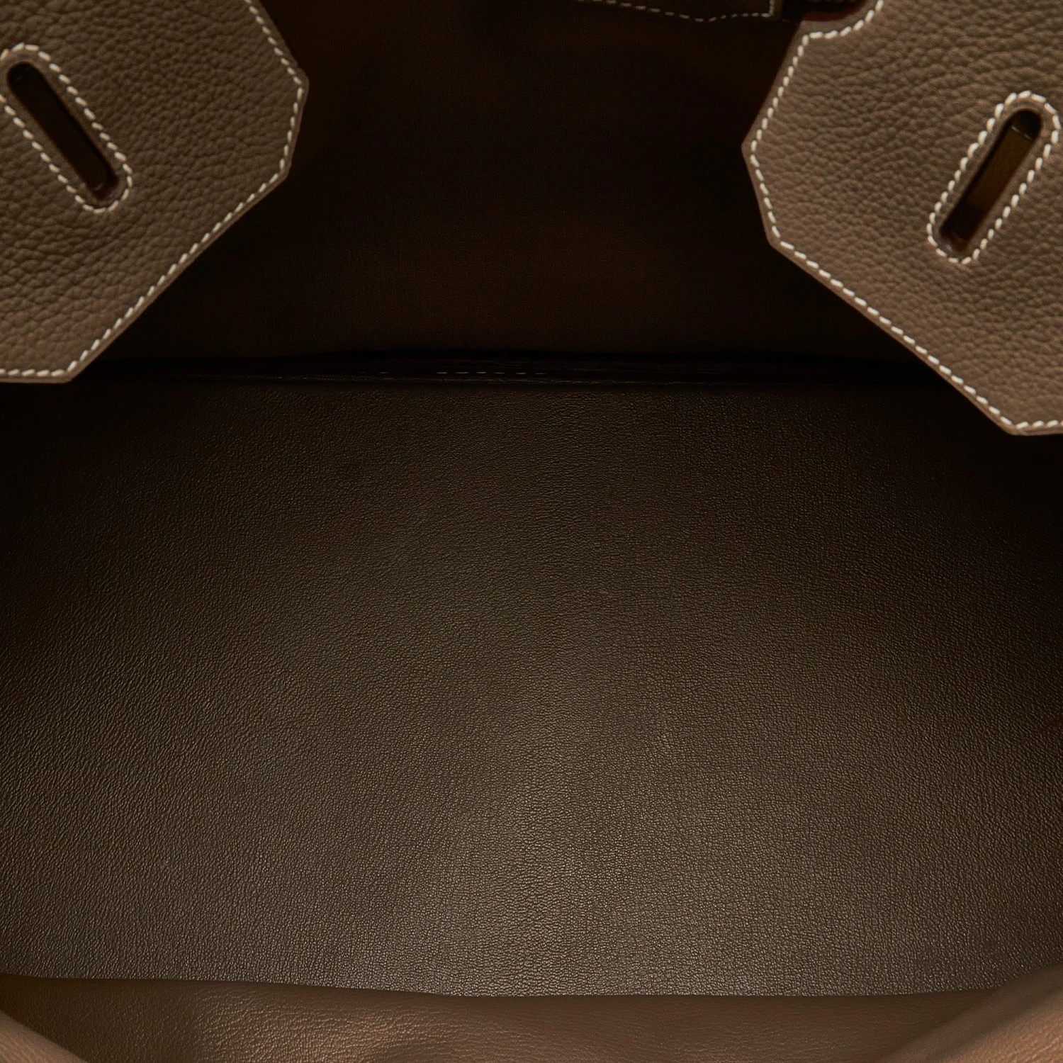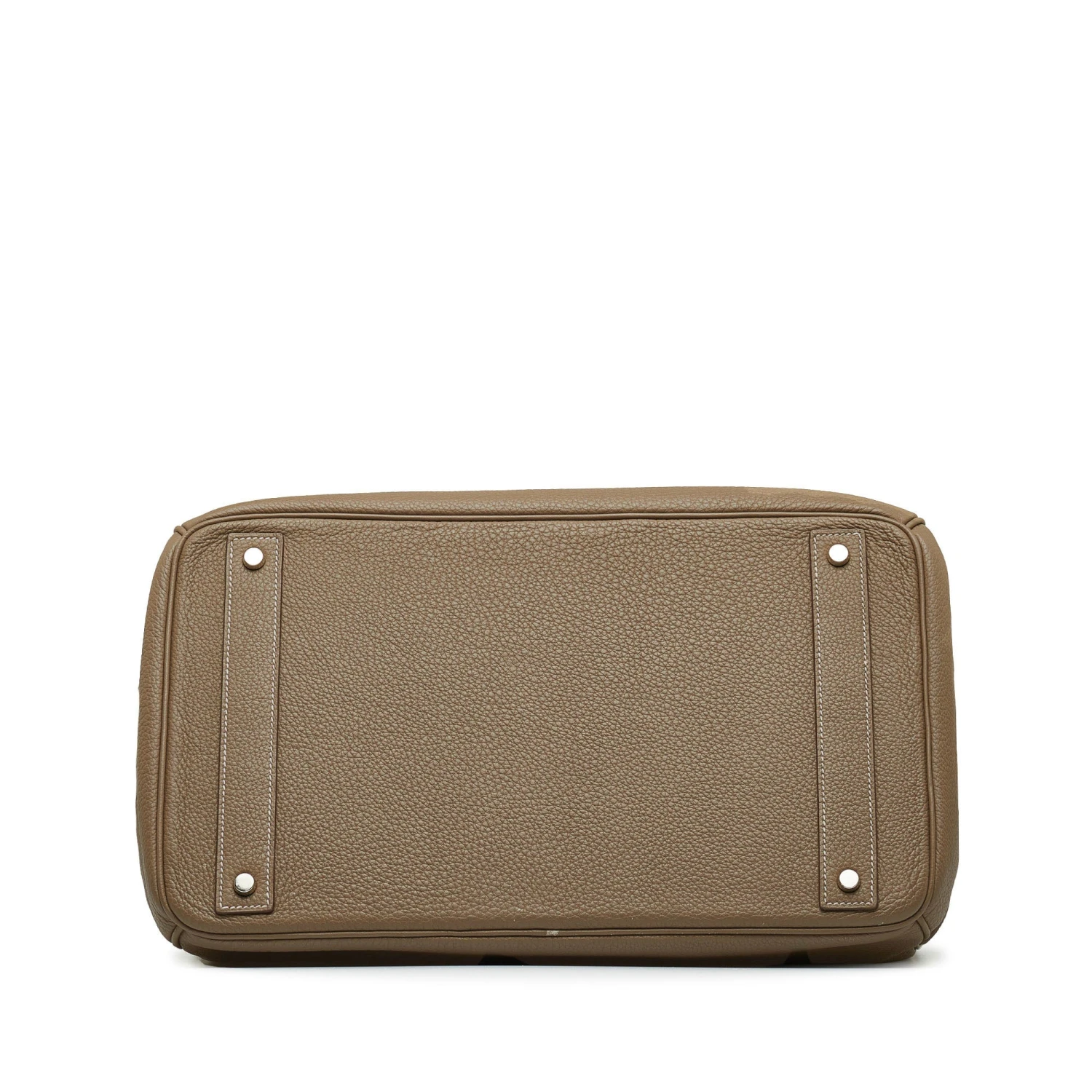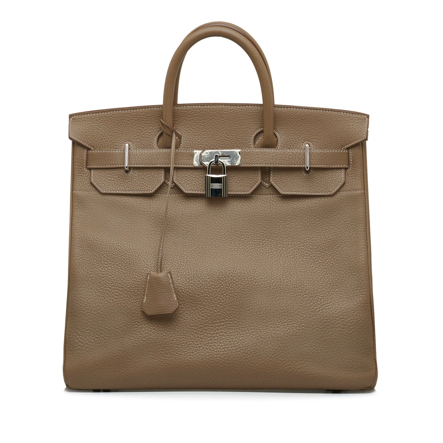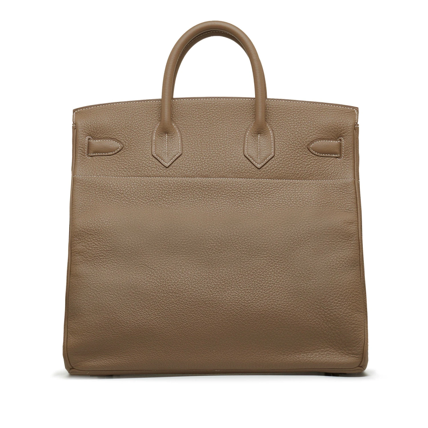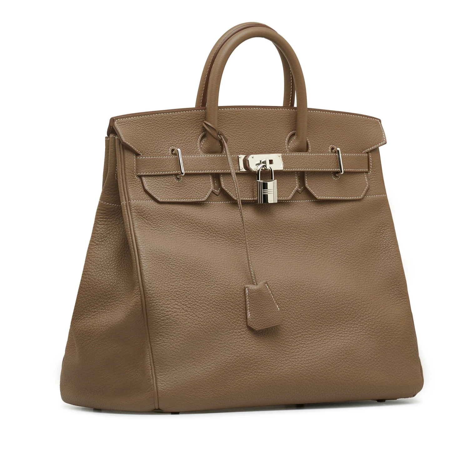The HAC Birkin 40 features a clemence leather body, rolled leather handles, and a front flap with pull through and twist lock closure.