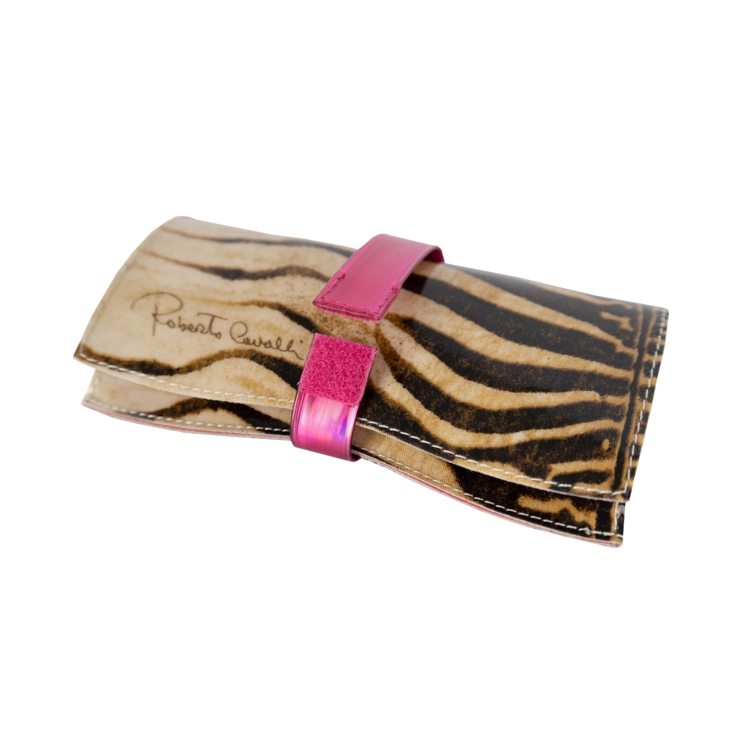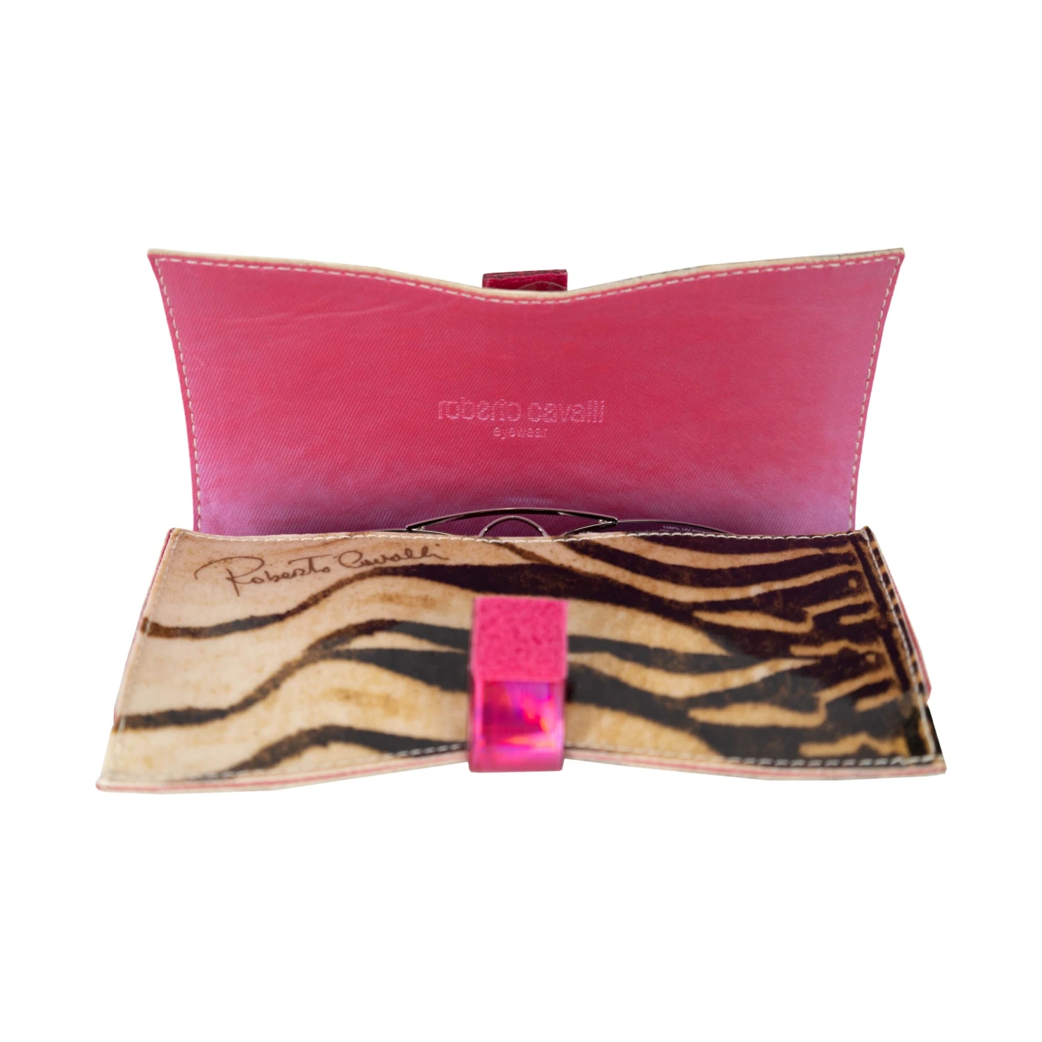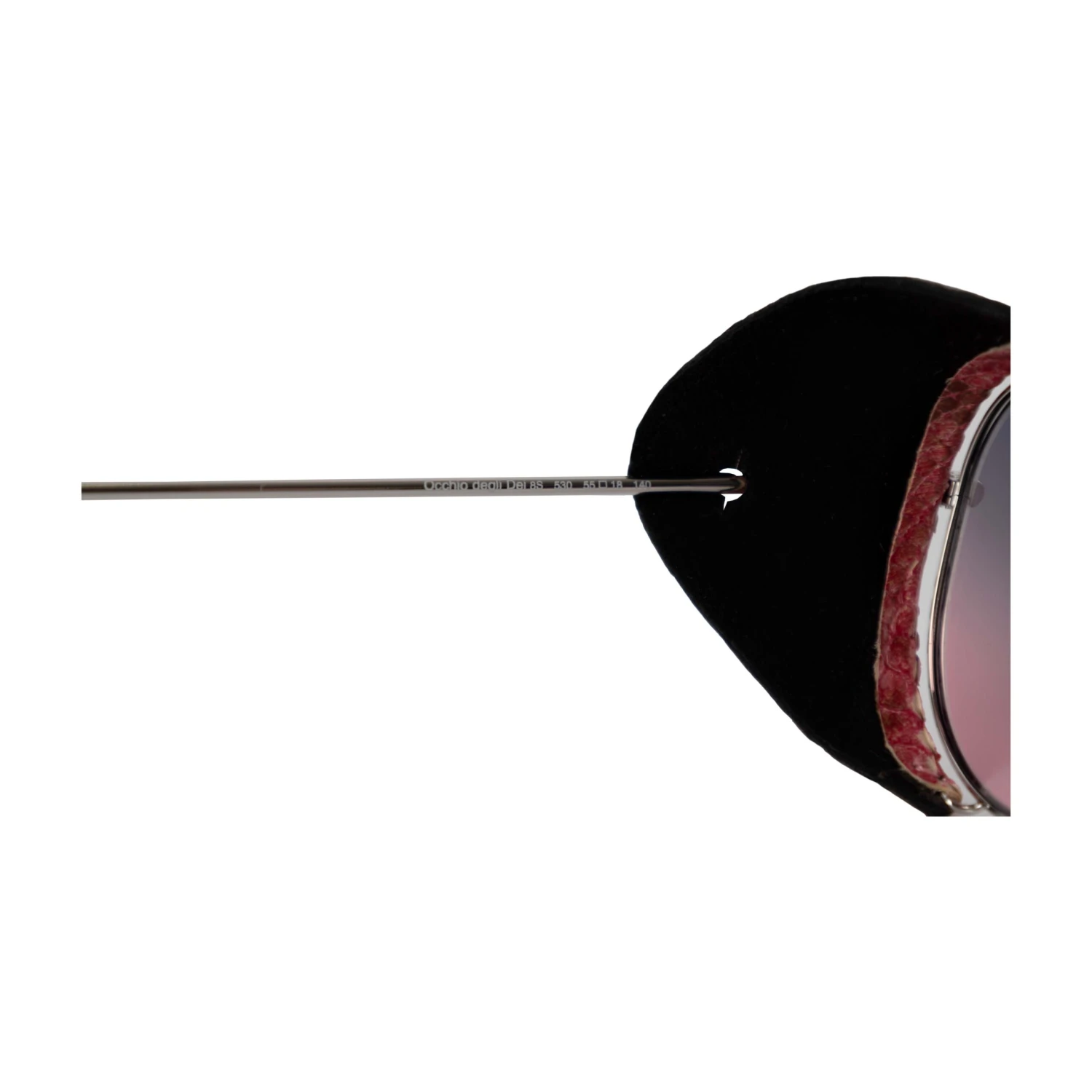 The aviator style sunglasses by Roberto Cavalli are crafted from sleek and durable ruthenium metal, with snakeskin patterned corner covers signed with Roberto Cavalli logo.