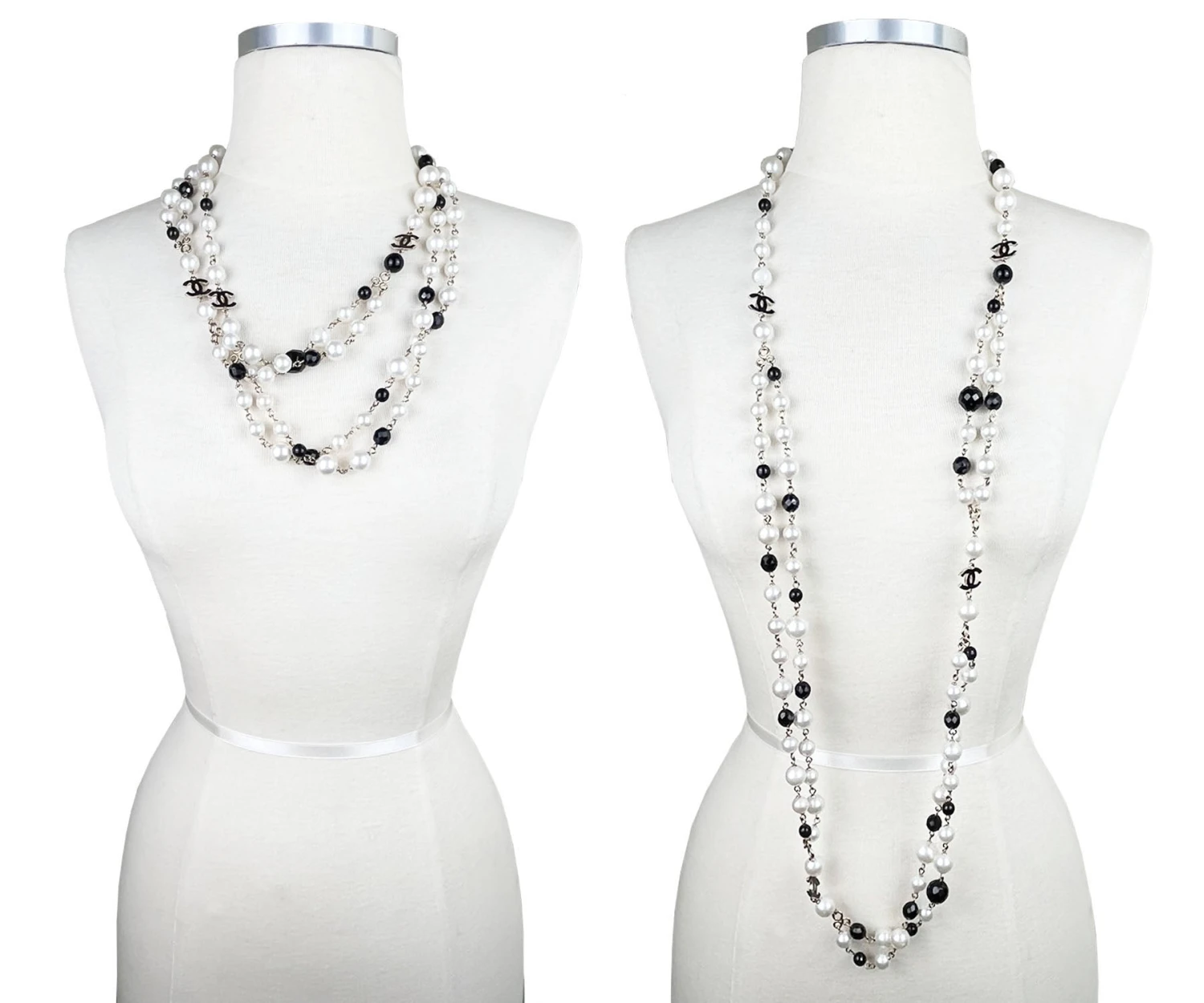 Chanel Black Enamel CC Black Bead Pearl Necklace.