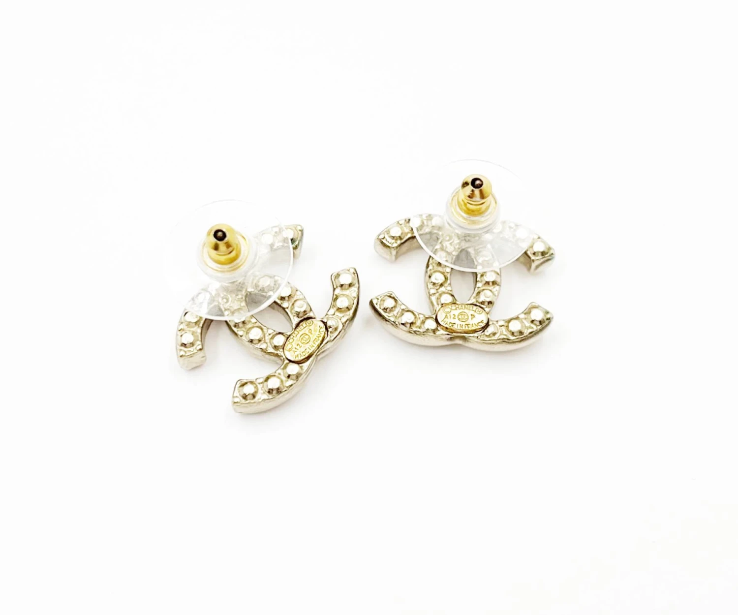 Chanel Gold CC Pastel Pink Pearl Piercing Earrings.