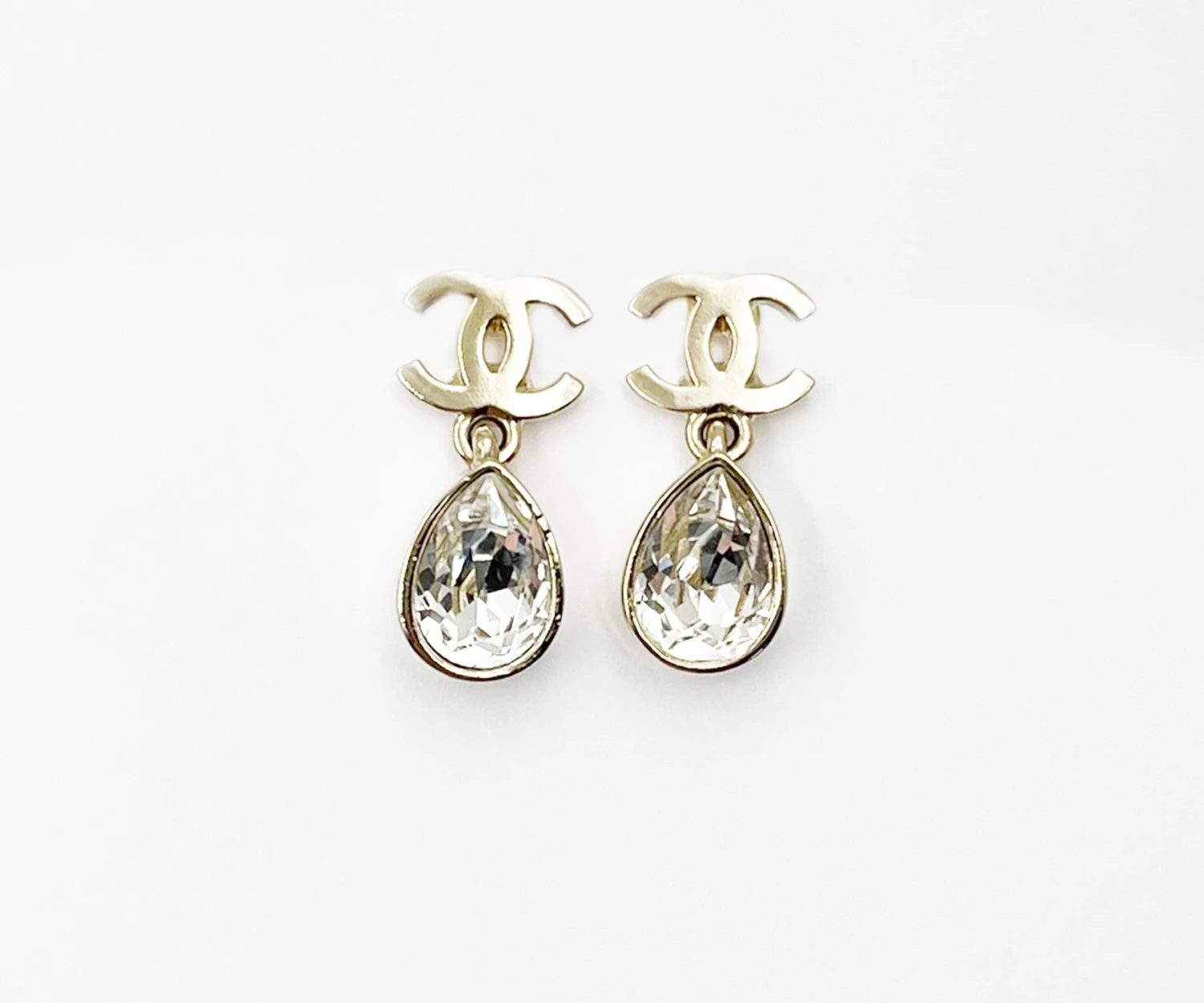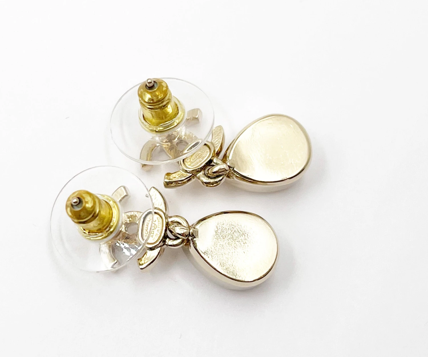 Chanel Gold CC Tear Drop Crystal Dangle Piercing Earrings.