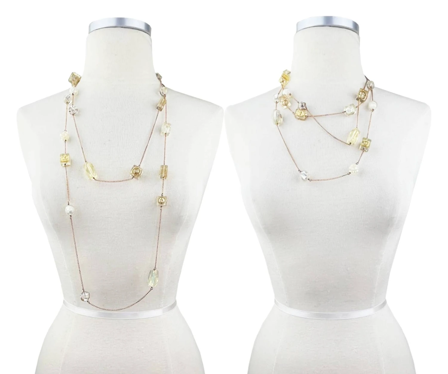 Chanel Vintage Gold Plated CC Resin Dice Pearl Super Long Necklace.