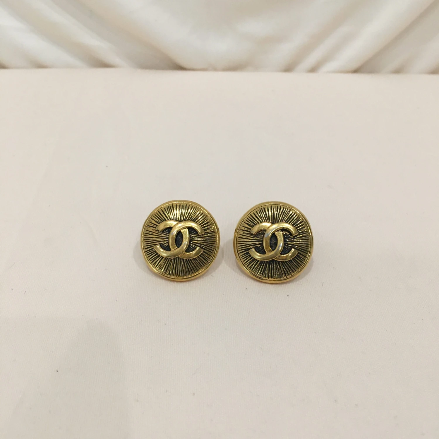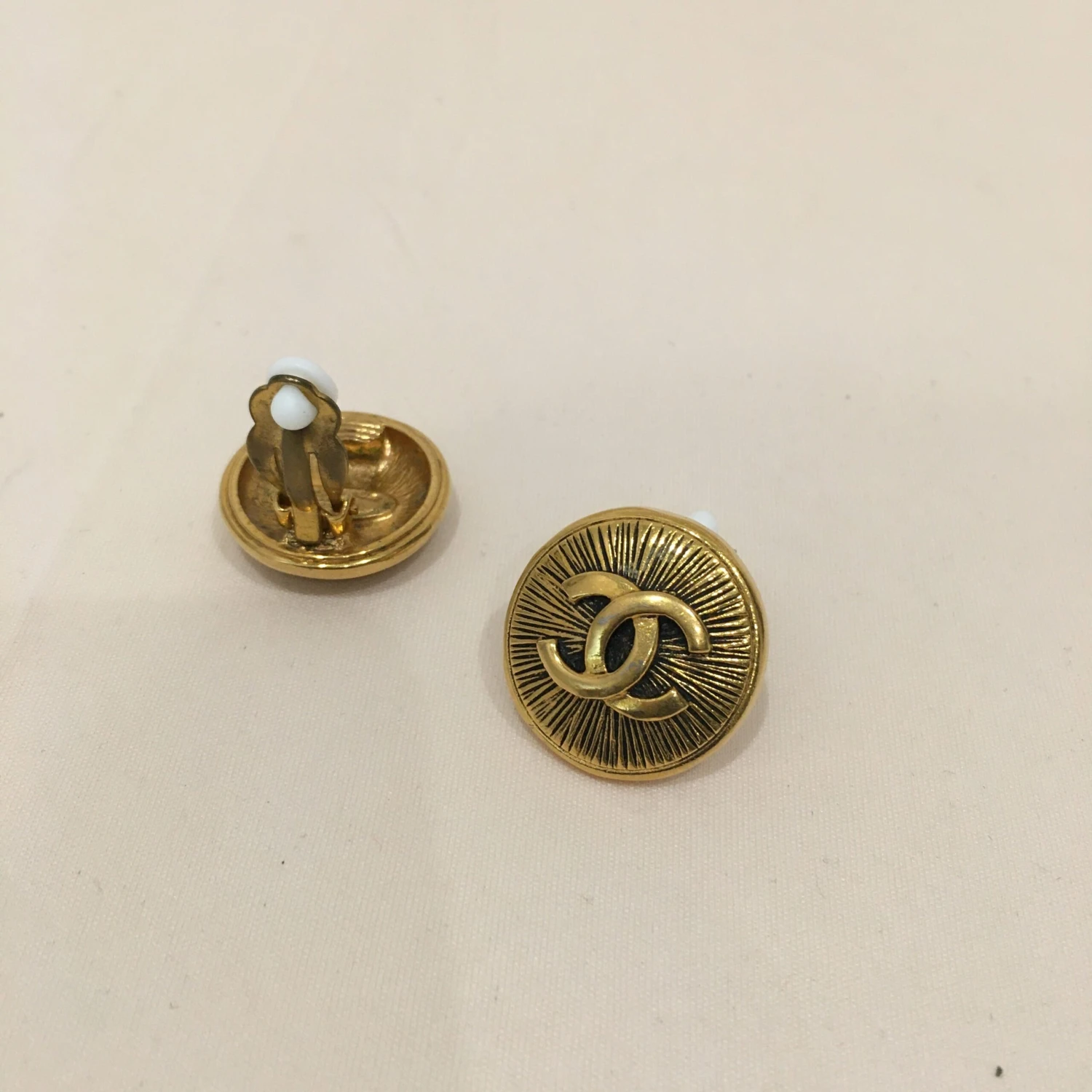 Chanel Gold CC Round Clip On Earrings Size/Measurements: 1″L x 1″W approx.