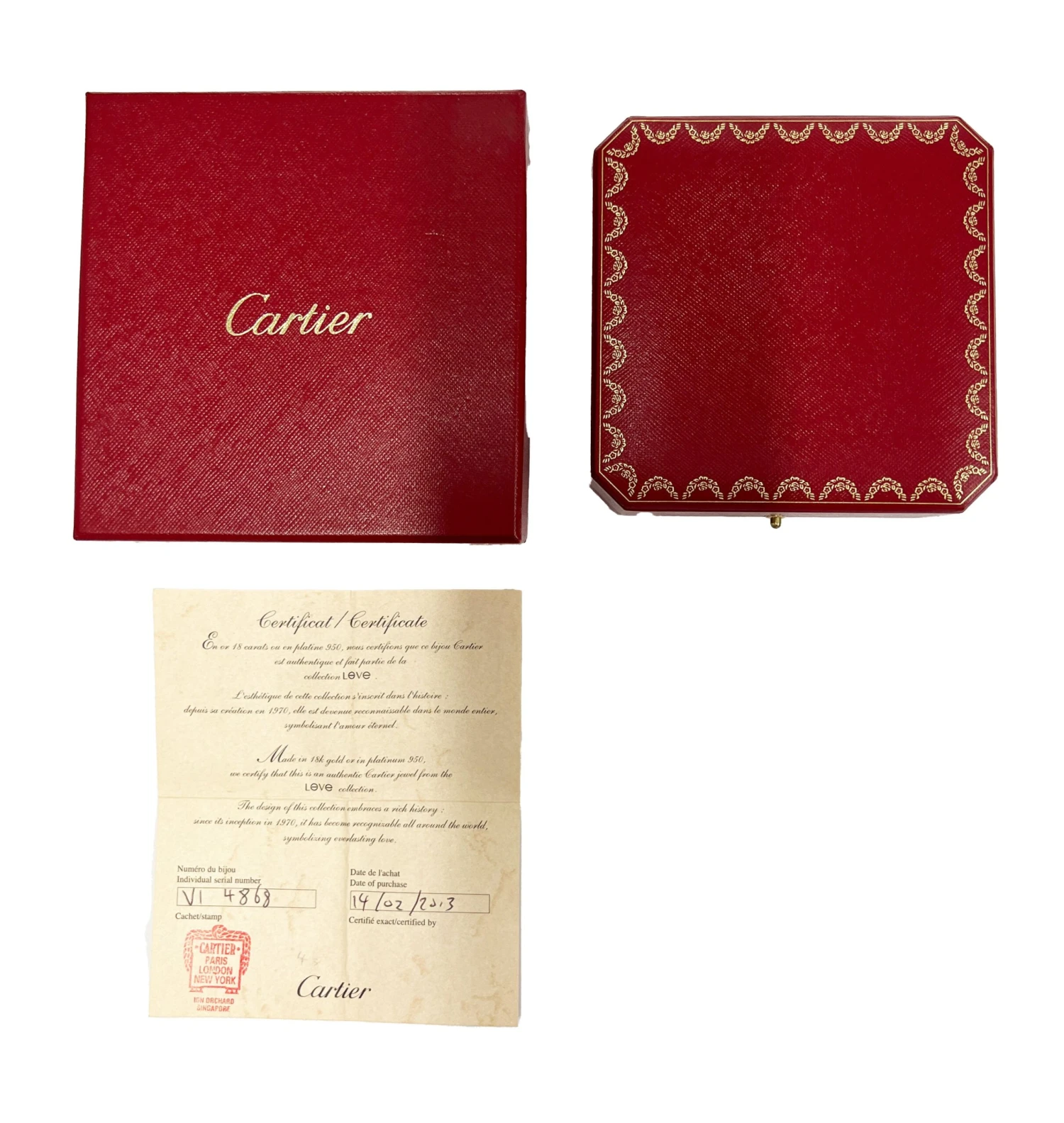 Condition Description: Cartier’s Love collection is the epitome of iconic, from the recognizable designs to the history behind the line-up. The collection started in 1969 with the bangle bracelet, which is engraved with a circular motif throughout to mimic the look of the bracelet’s signature screw-lock mechanism.