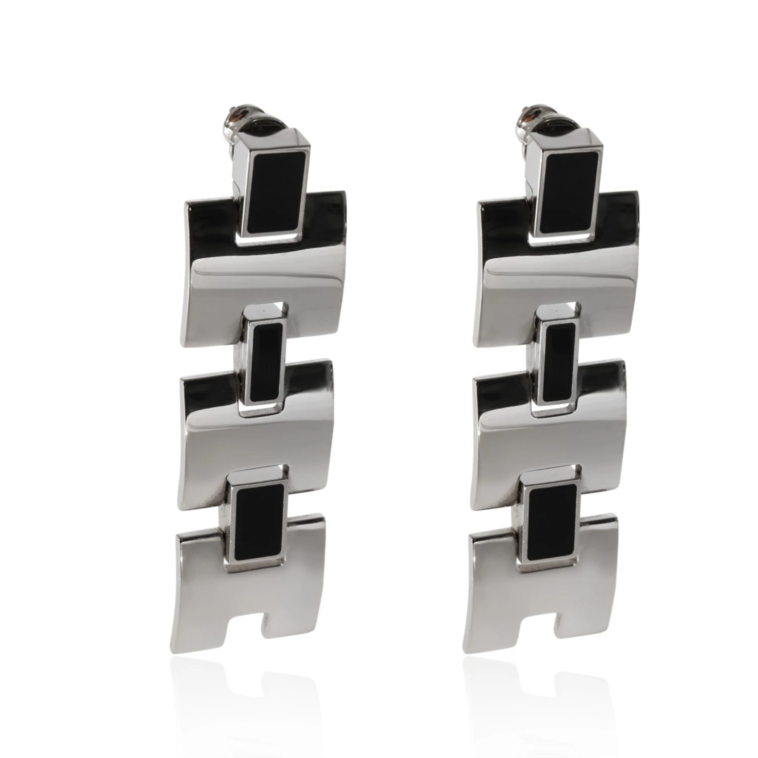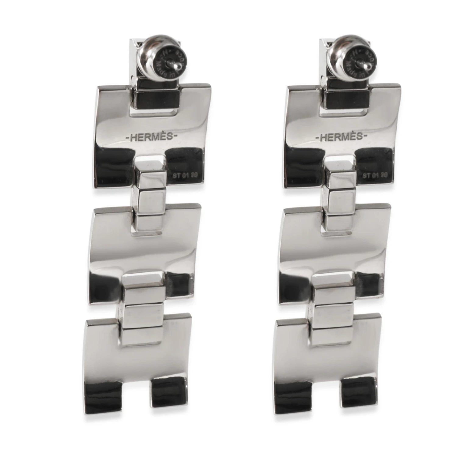 Listing Title: Hermes Eileen Long Earrings Plated in Palladium