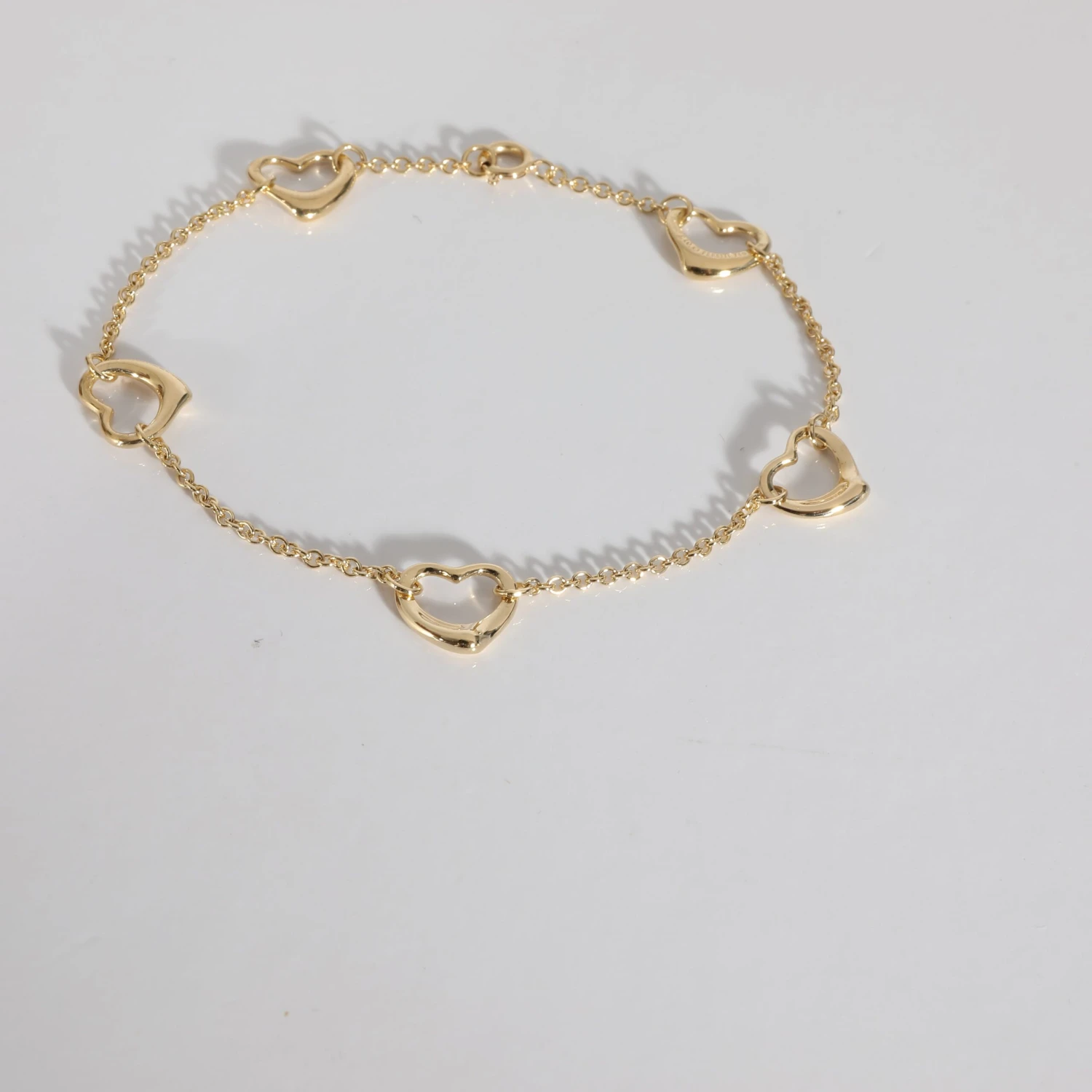 Listing Title: Tiffany & Co. Elsa Peretti Open Heart 5 Station Bracelet in 18K Yellow Gold