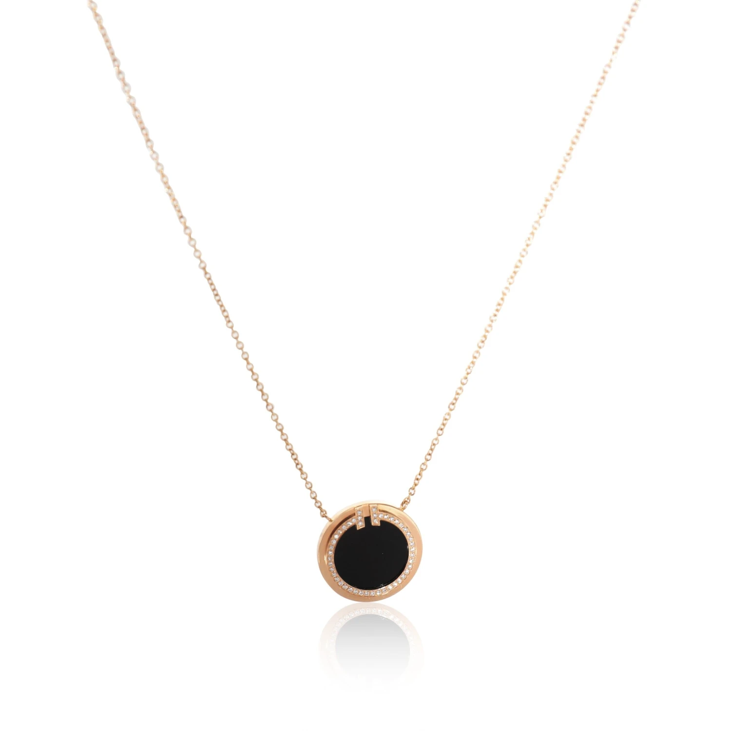 Tiffany & Co. T Black Onyx & Diamond Circle Pendant in 18K Rose Gold 0.05 CTW