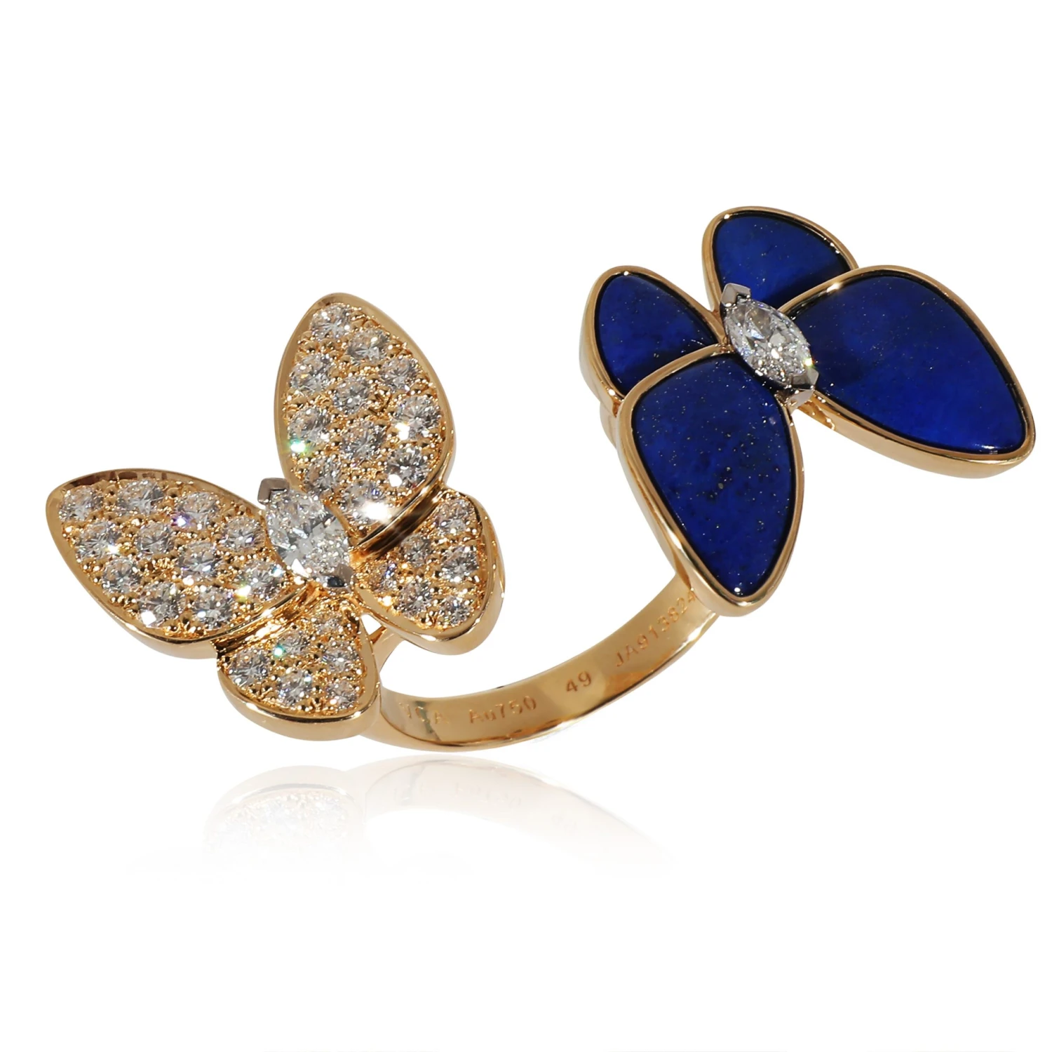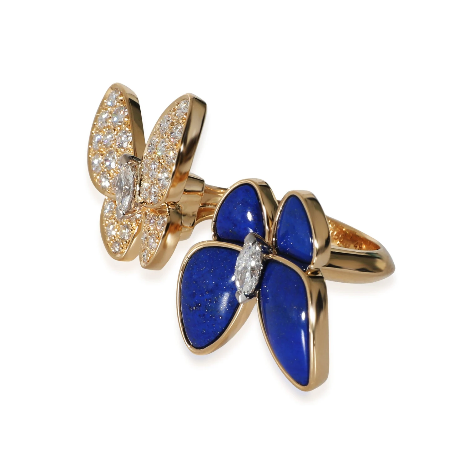 Van Cleef & Arpels Butterfly Ring with Lapis Lazuli & Diamonds 18k Gold 0.99 CTW