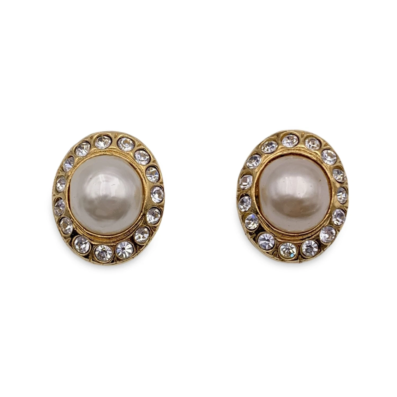 Faux Pearl And Gold Metal Frame Embellished With Crystals.