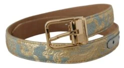 Style Tribute Dolce & Gabbana Women’s Blue Leather Jacquard Embossed Gold Metal Buckle Belt