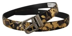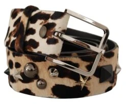 Style Tribute Dolce & Gabbana Men’s Brown Leopard Print Studded Leather Metal Buckle Belt