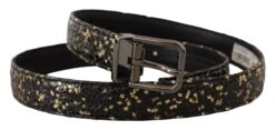 Style Tribute Dolce & Gabbana Women’s Black Crocodile Print Gold Metal DG Logo Buckle Belt
