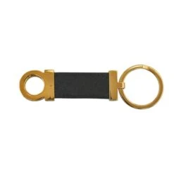 ELADY SALVATORE FERRAGAMO Gancini Keychain Key Ring JI-22 Gold Black Plated Leather Ladies