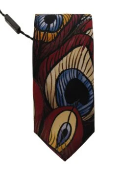 Style Tribute Dolce & Gabbana Men’s Marron Peacock Feather Adjustable Necktie Accessory Tie