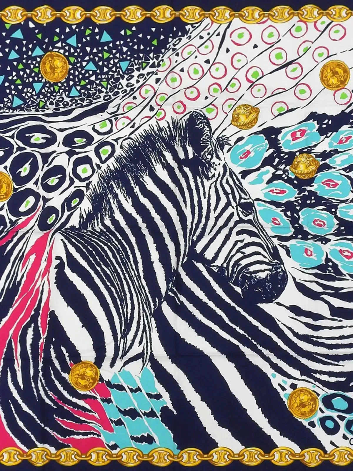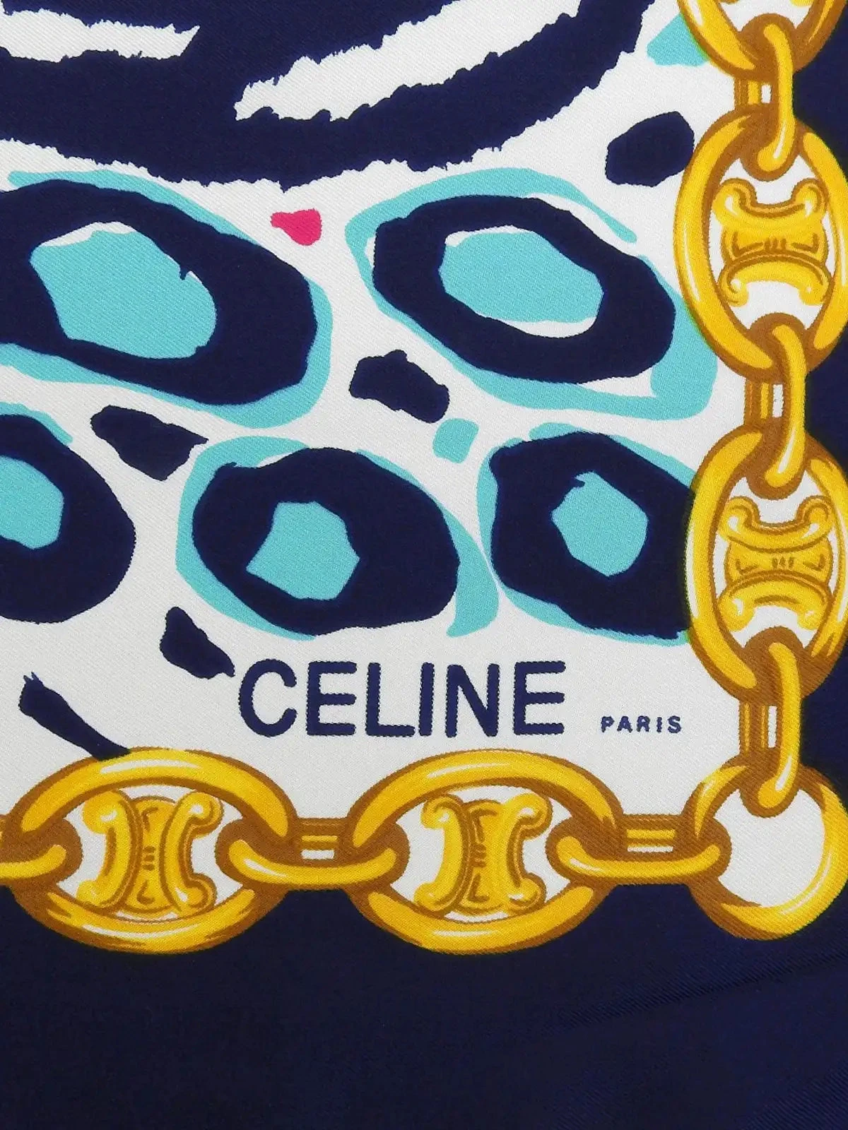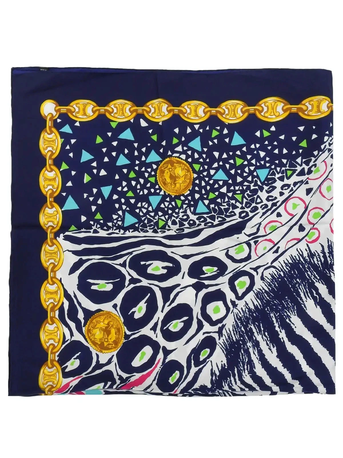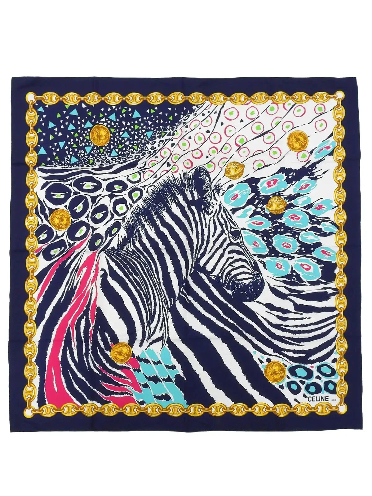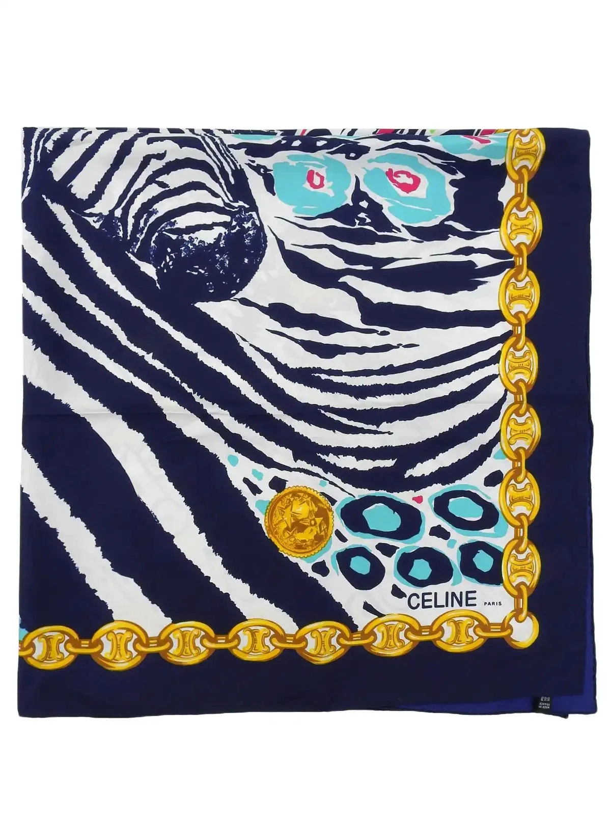 CELINE Macadam Chain Zebra Pattern Scarf Navy/Multi