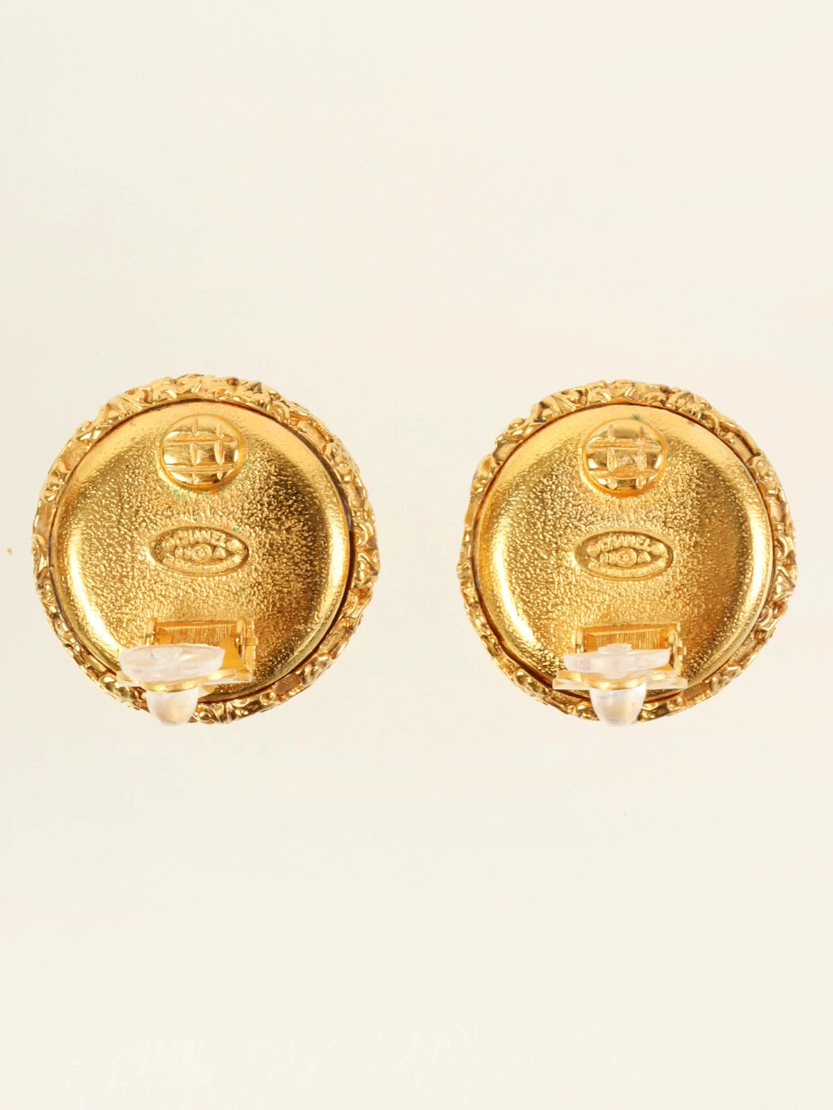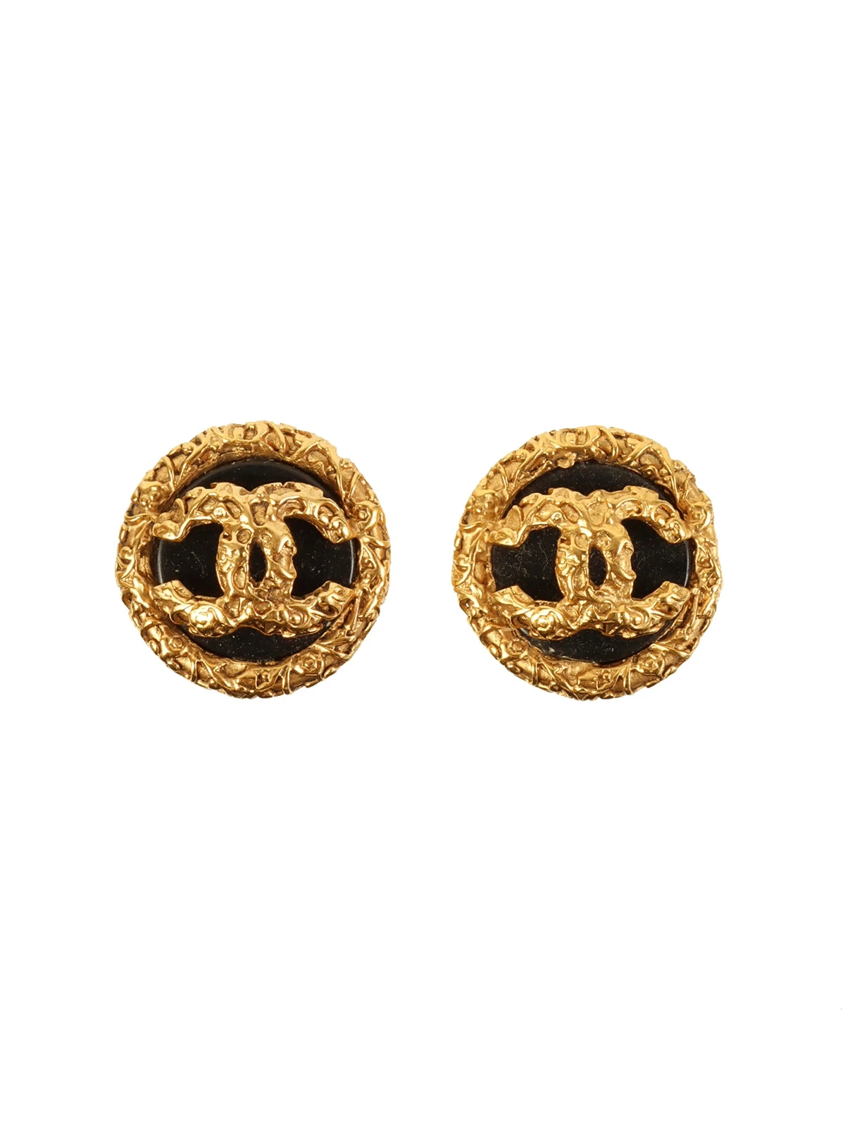 CHANEL 1995 Made Round Design Cc Mark Earrings Gold/Black