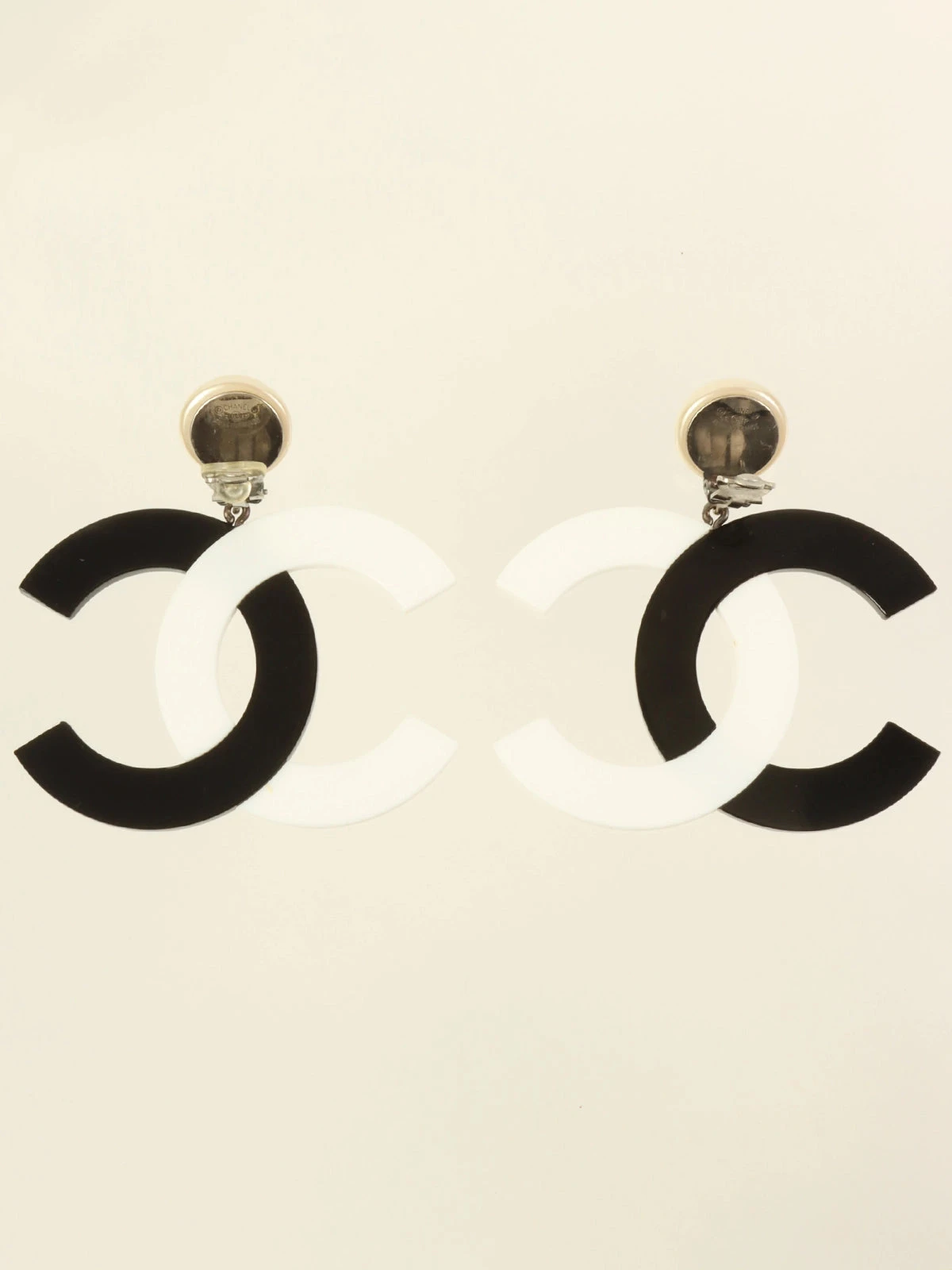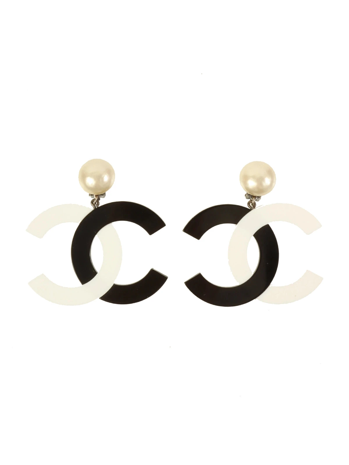 CHANEL 1996 Made Pearl Cc Mark Swing Earrings Black/White