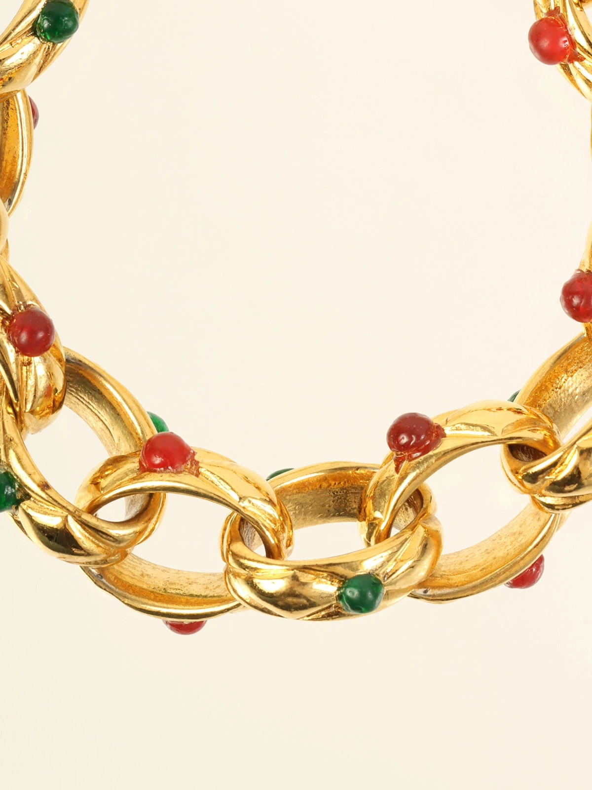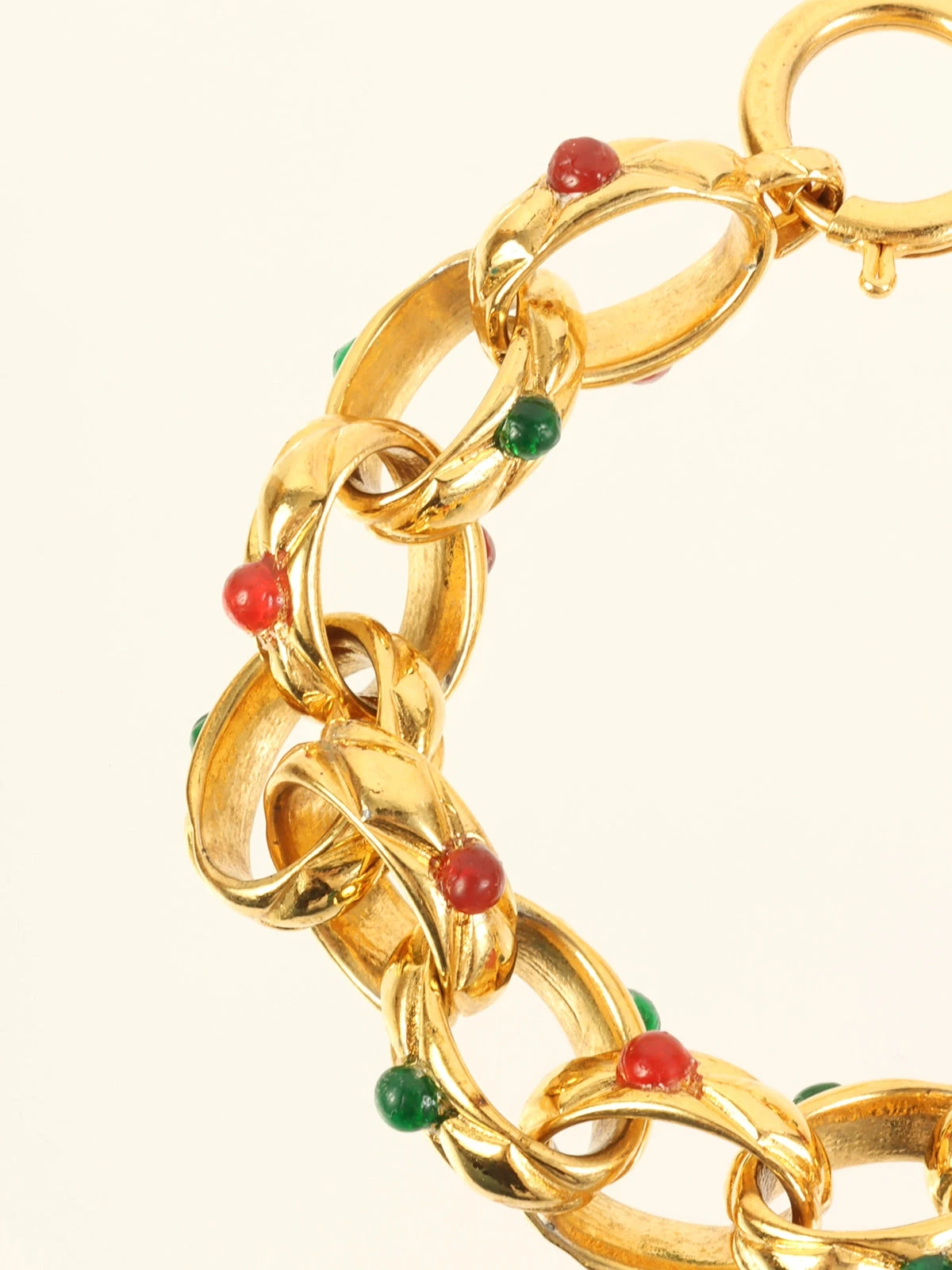 CHANEL Gripoix Chain Bracelet Gold/Green/Red