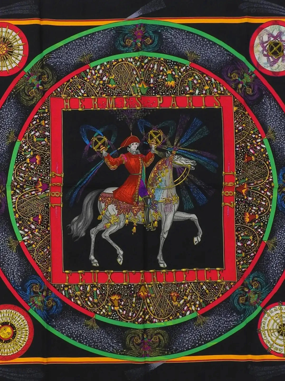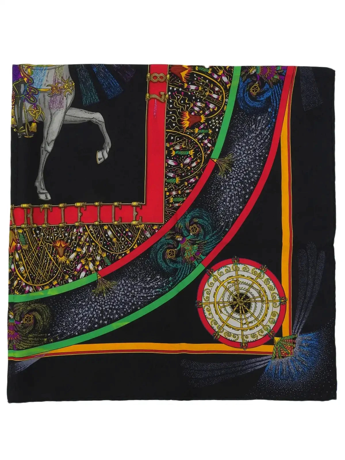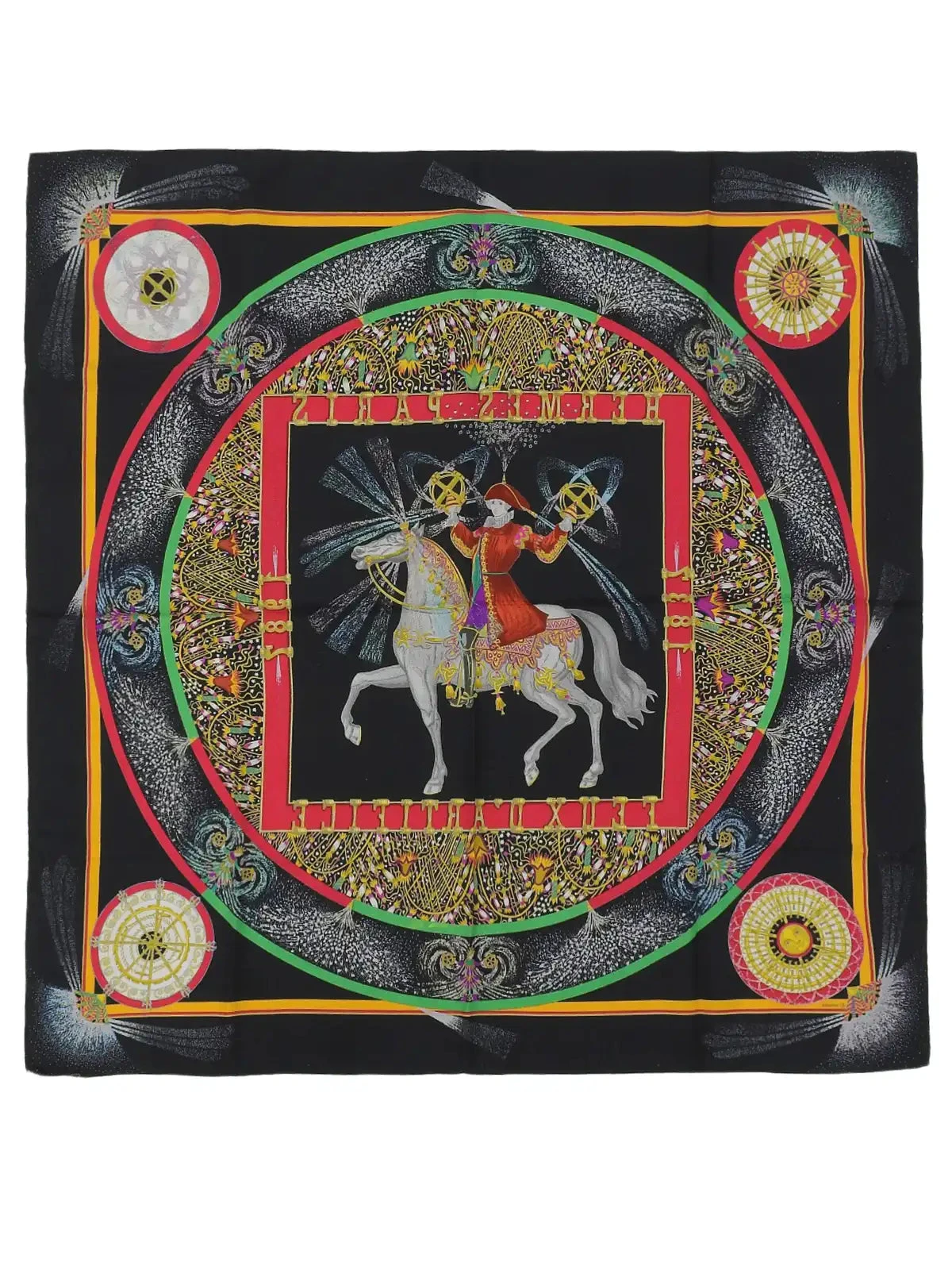 HERMES Carres 90 Feux D’Artifice Scarf Black/Multi