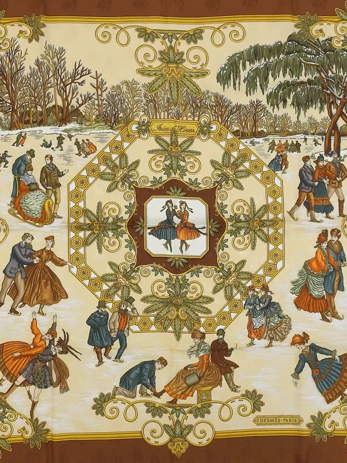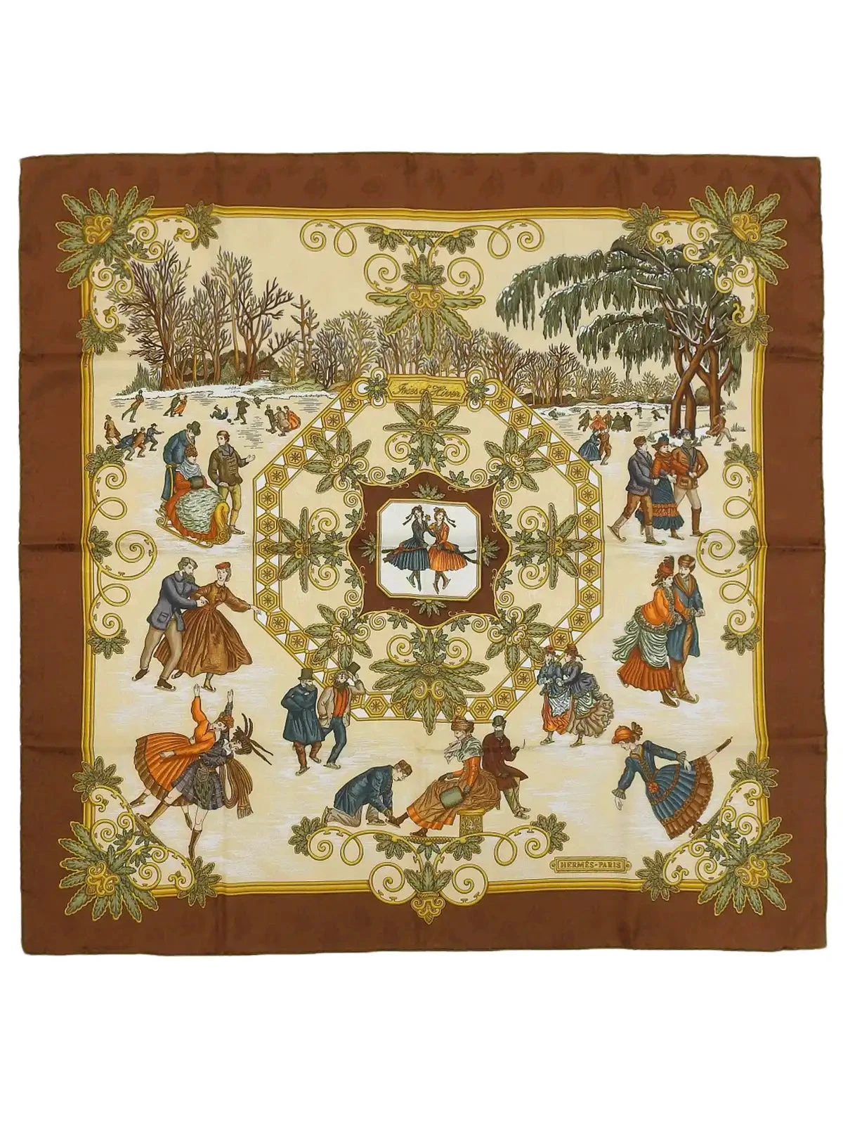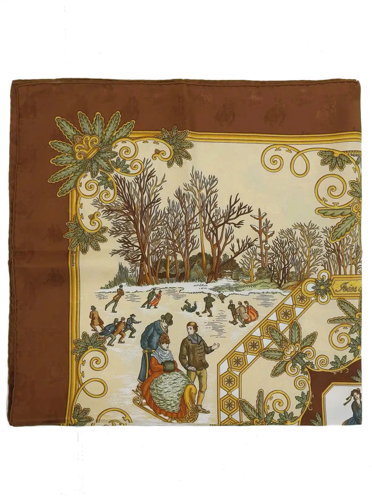 HERMES Carres 90 Joies D’Hiver Scarf Brown/Beige/Multi