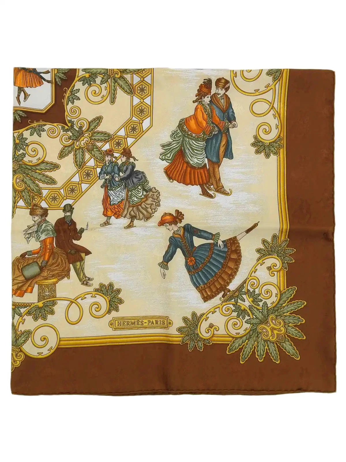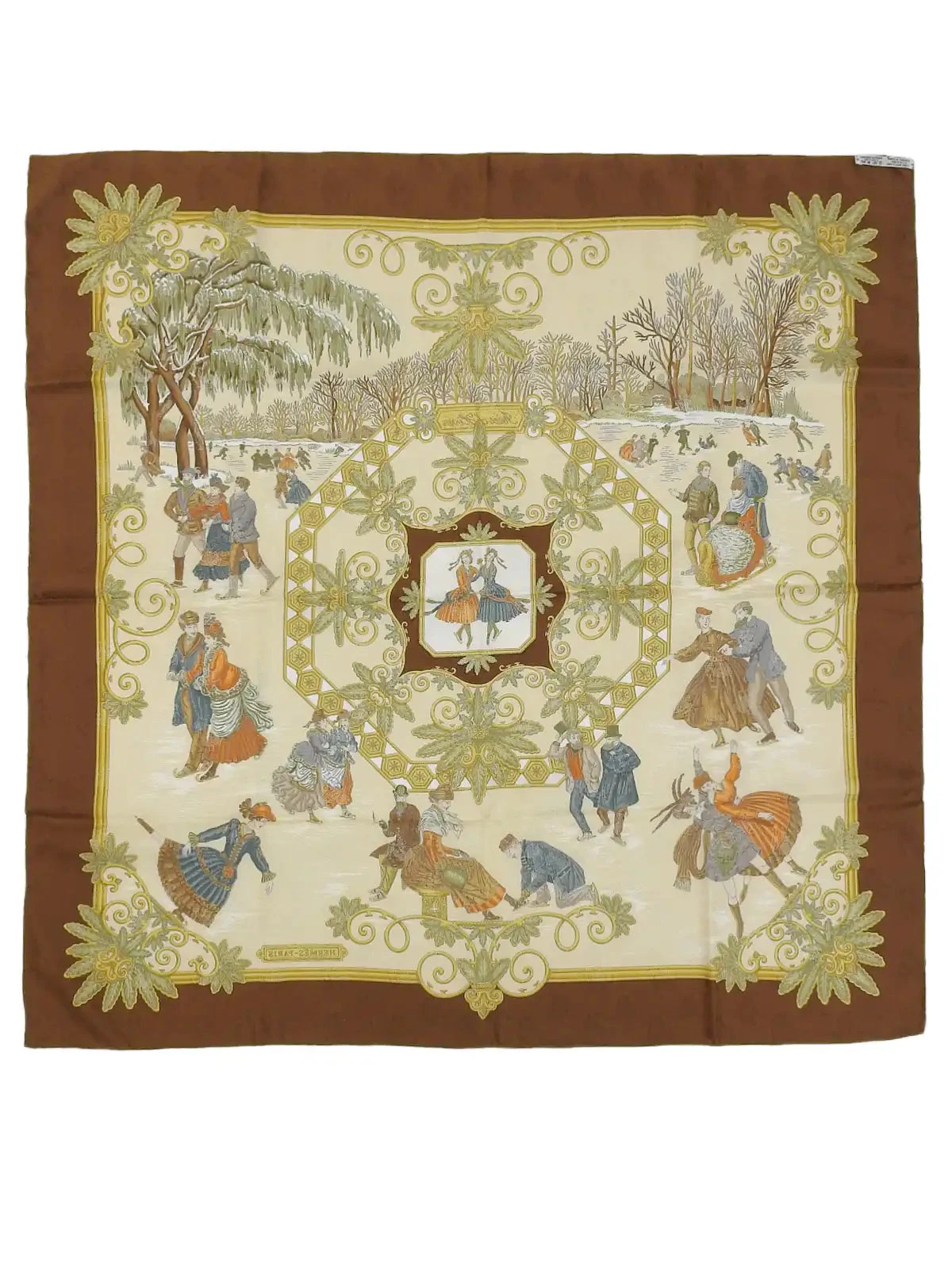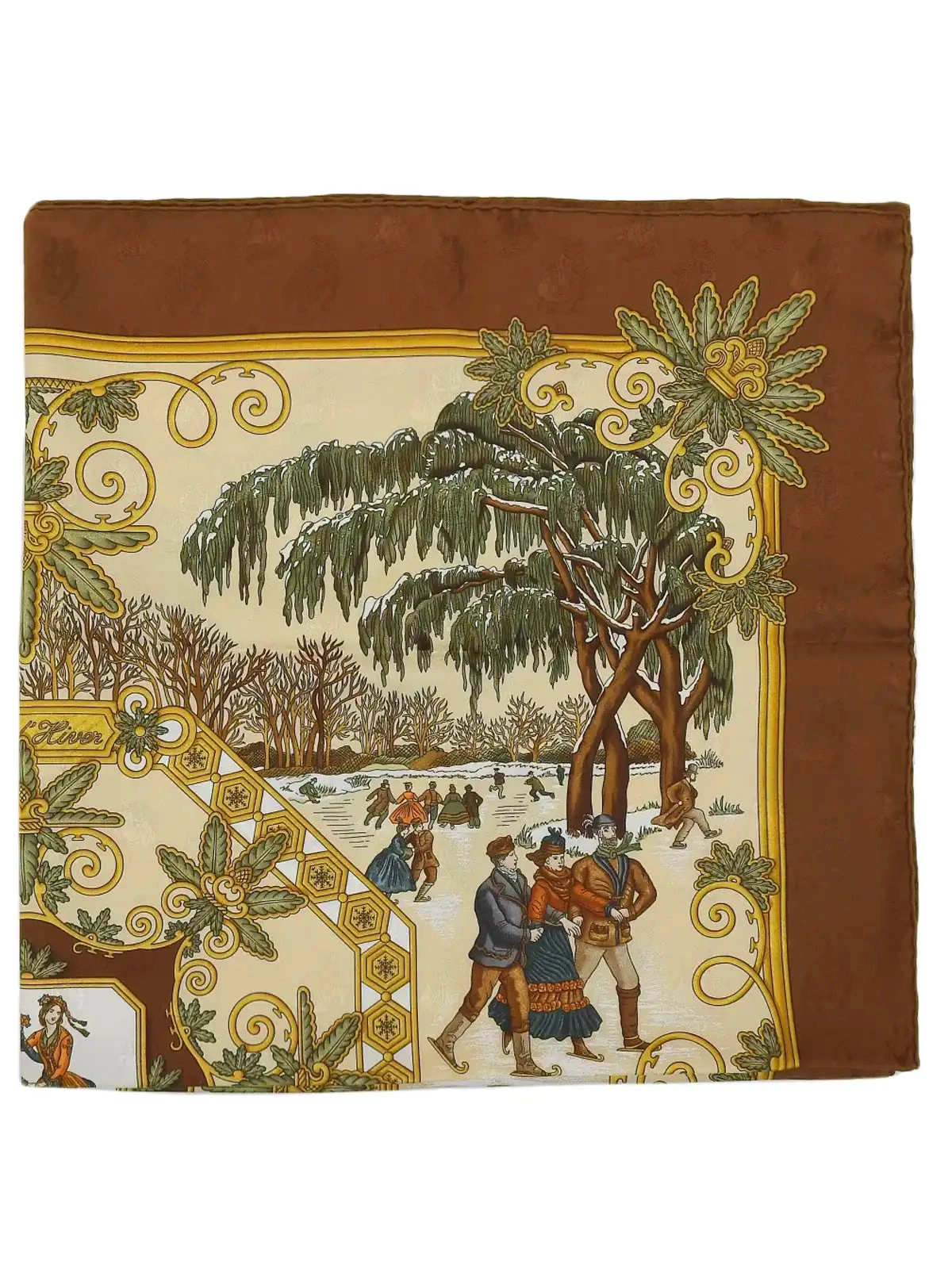 HERMES Carres 90 Joies D’Hiver Scarf Brown/Beige/Multi