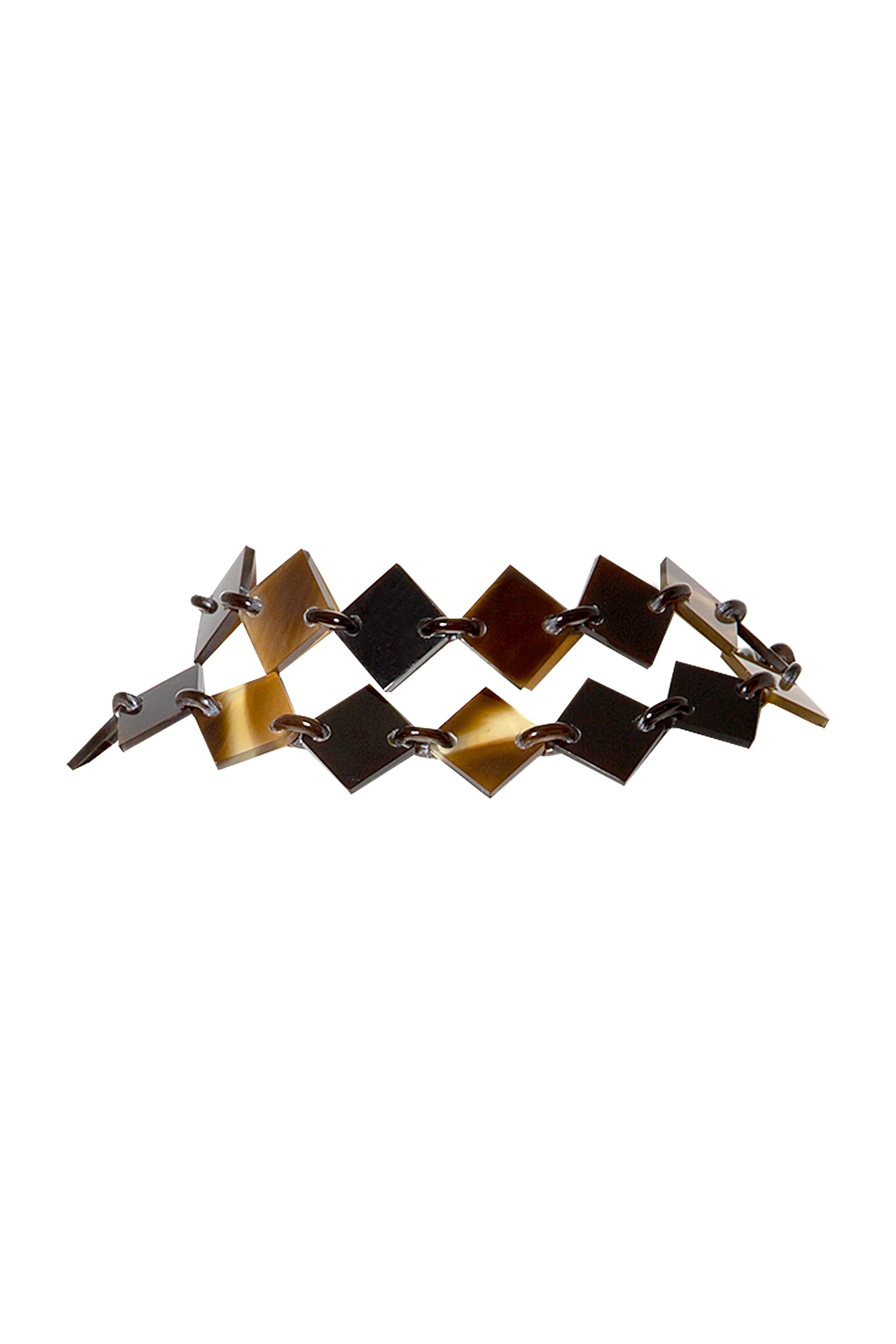Made from buffalo horn, creating a beautifully unique and natural look Brown and purple bright colours Comes with a dustbag and a box Excellent condition Note that the condition of this necklace is excellent; however, it shows signs of wear on the interlocking chains.