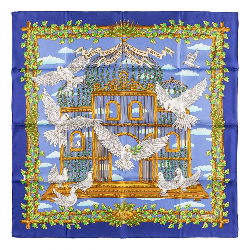 Featuring the motto “We the Peoples of the United Nations united for a Better World for all,” this exclusive scarf was only available at the San Francisco HERMES boutique in honour of the founding of the United Nations on October 24, 1945.