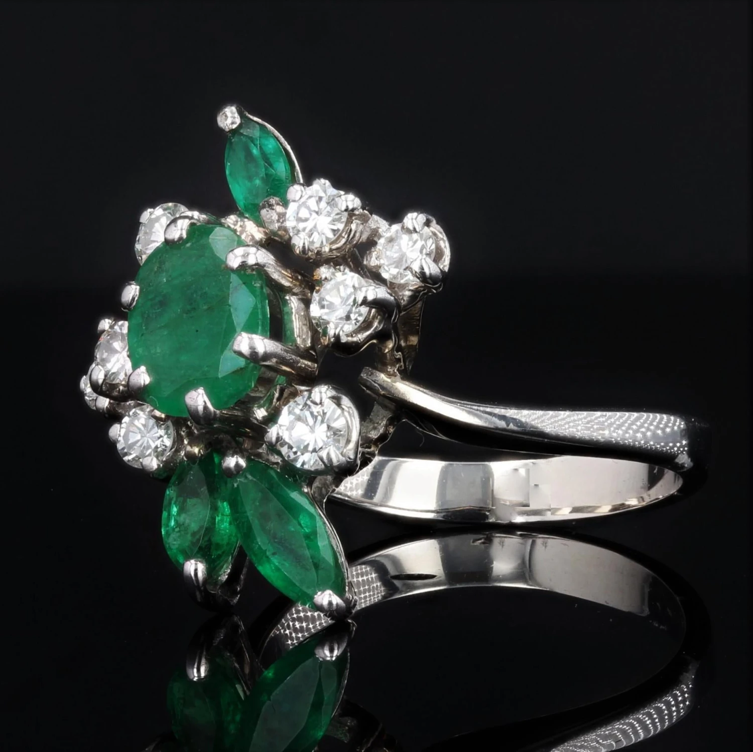 Authentic vintage ring – French work of the 1970s, small mark on one of the shuttles of emerald, not very visible.