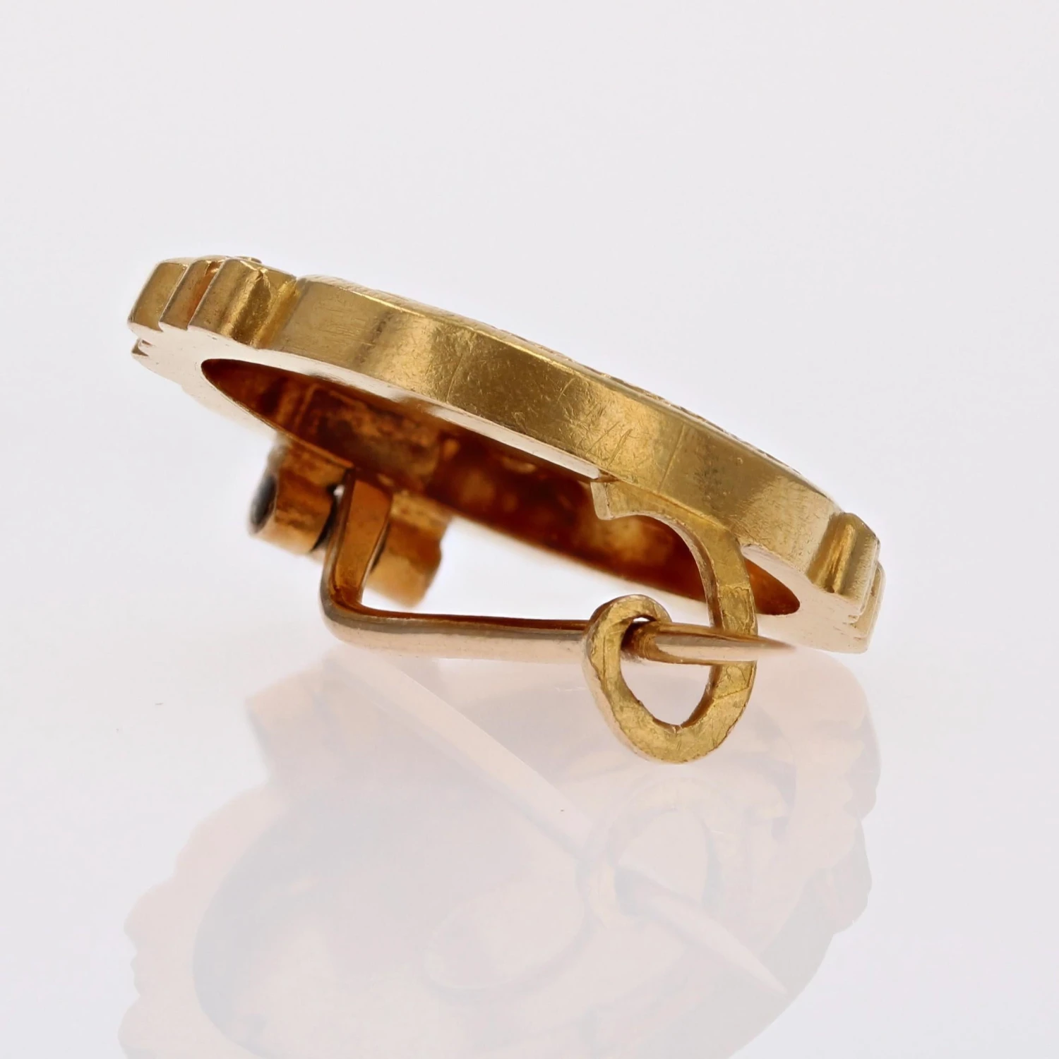 Brooch in 18 karat yellow gold, eagle head hallmark.