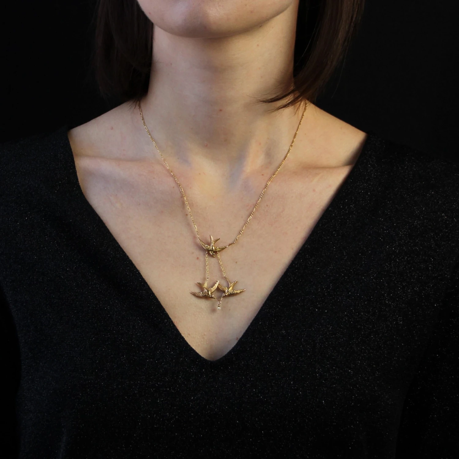 Our opinion : Highly symbolic, this antique swallow necklace heralds happy days ahead.
