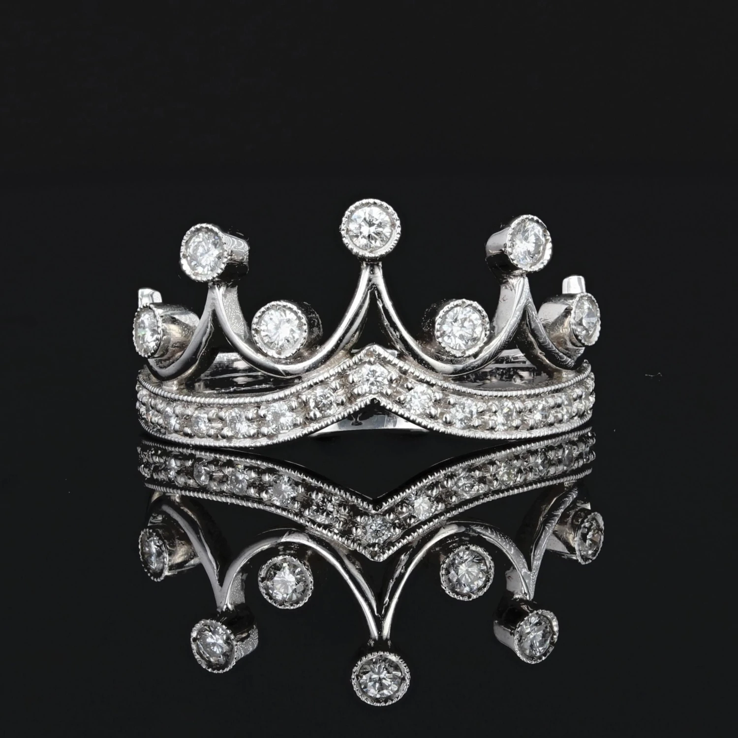 In the form of a tiara, this ring is set with diamonds across its front half and has a highly original design; you will certainly not see another ring similar to this anywhere else.
