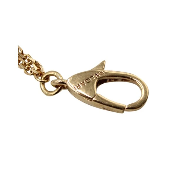 BvlgariâEUR s iconic logo plates at both ends as an insert and a charm finish the piece.