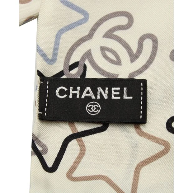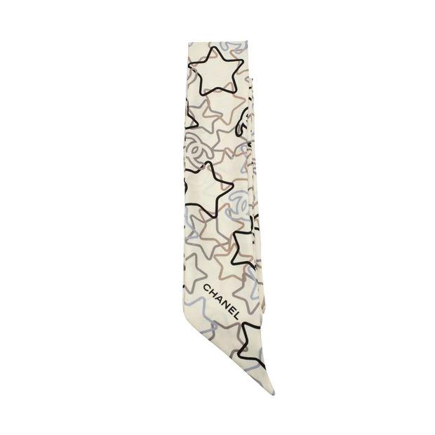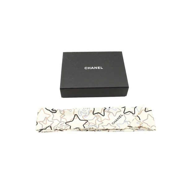 Chanel Star Printed Slim Bandeau in Ecru Silk Condition Good with box Sign of wear Multiple snags on the material Material Silk Color Ecru with multicolor print Size Width 65 mm Length 1200 mm SKU 276719 Collection ID 21789