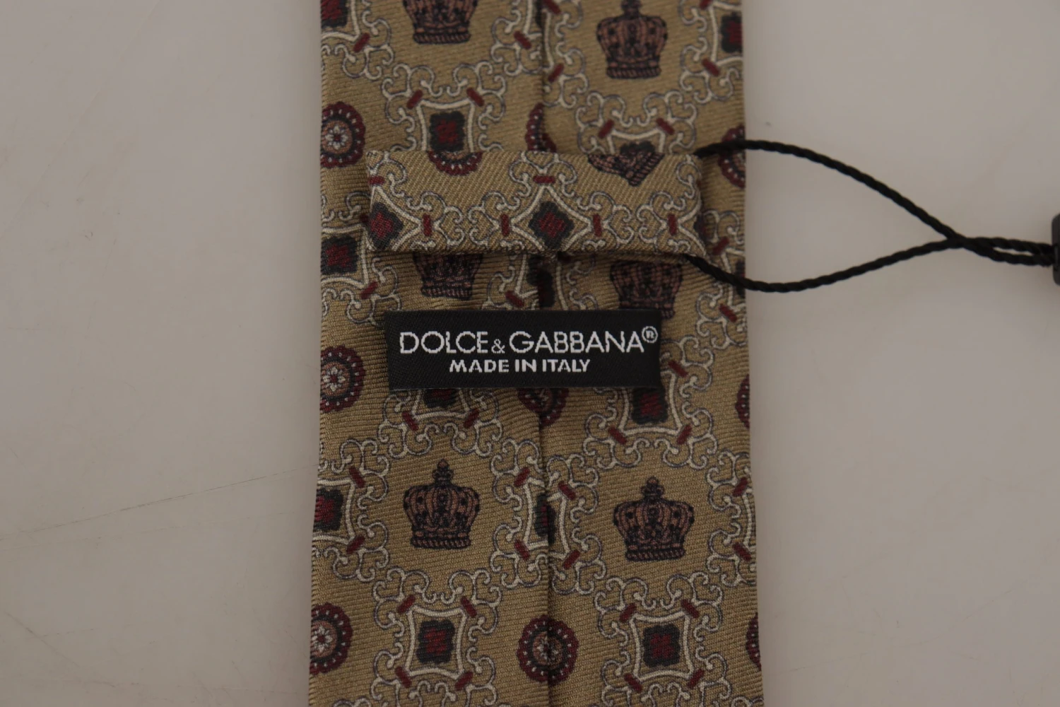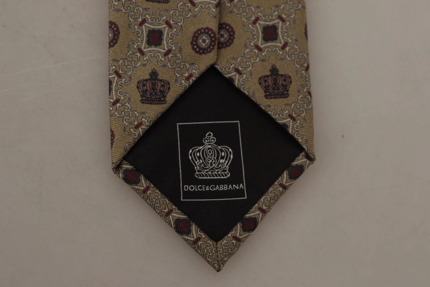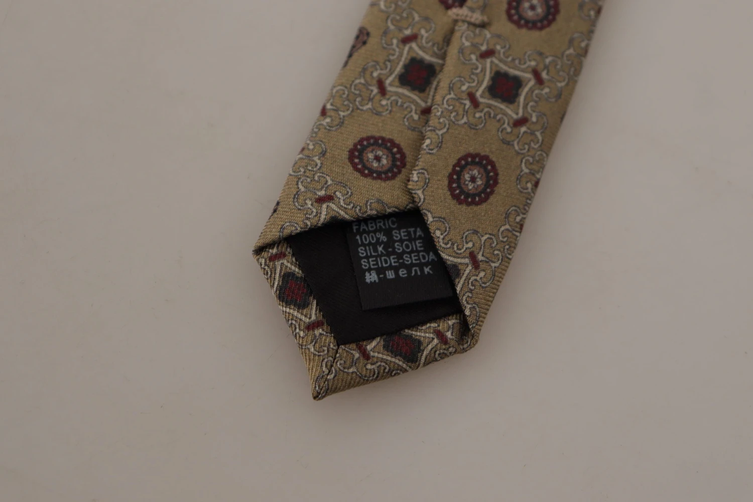 Dolce & Gabbana Men’s Beige Fantasy Print Silk Adjustable Necktie Accessory Tie