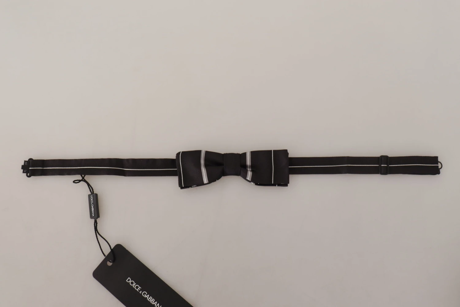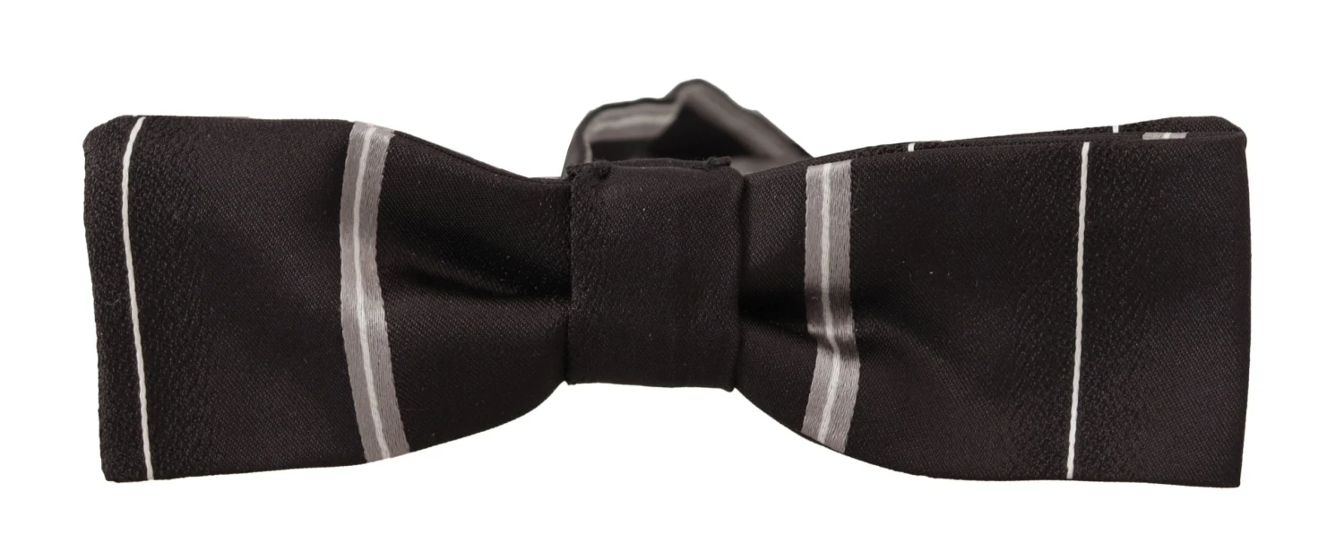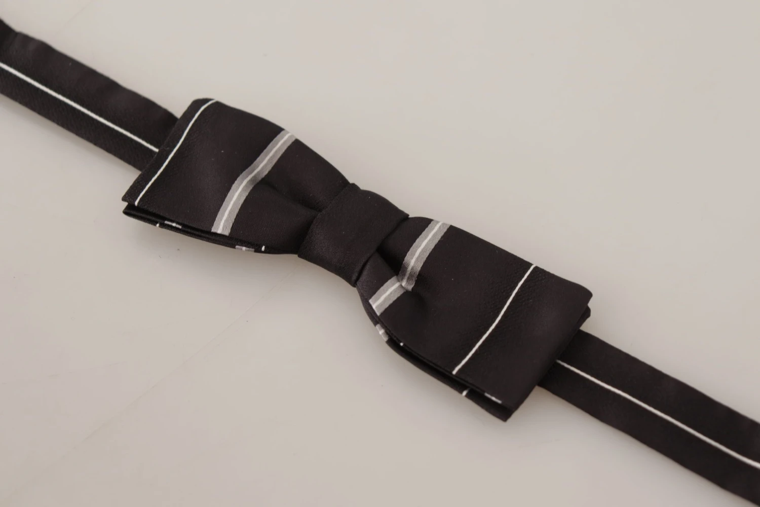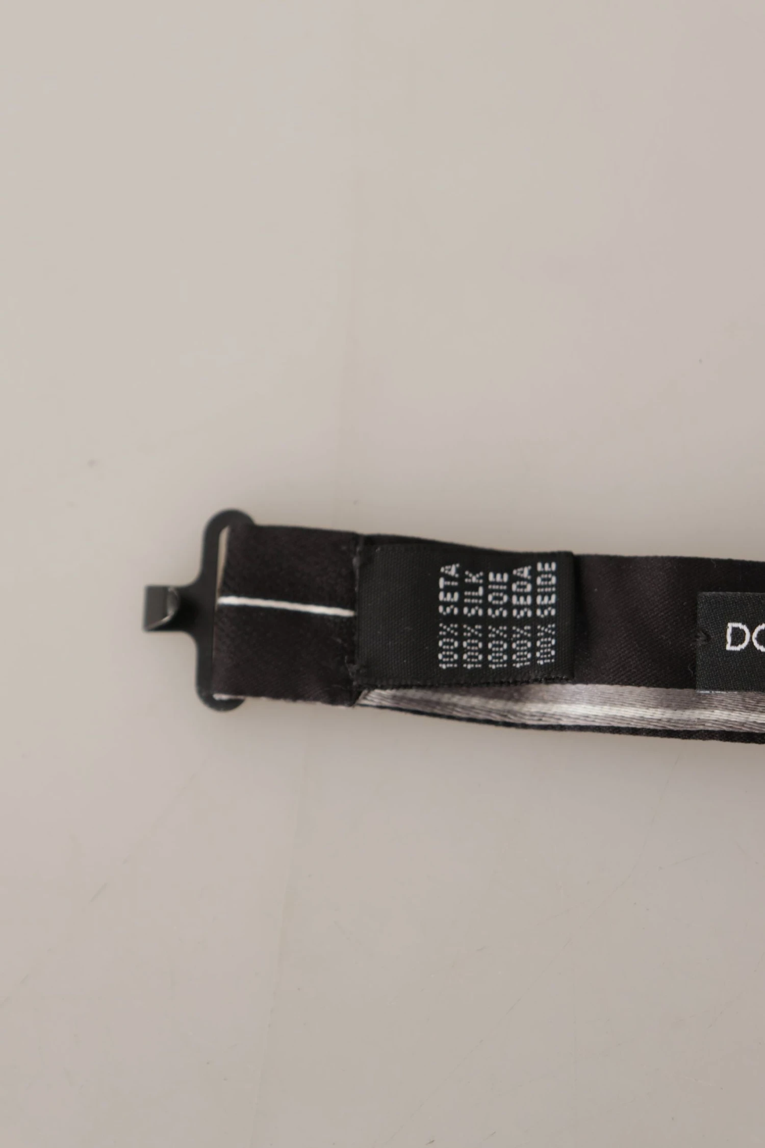 100% Authentic Dolce & Gabbana bow tie Black and gray line pattern Made from 100% silk Adjustable length neck strap One size fits all Expertly crafted in Italy Width: 4cm Suitable for men Material: 100% Silk