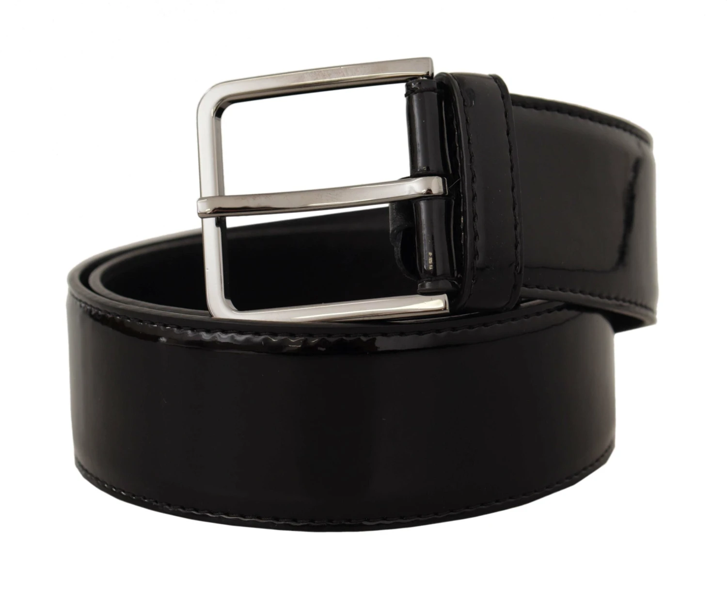 Dolce & Gabbana Men’s Black Patent Leather Logo Engraved Buckle Belt