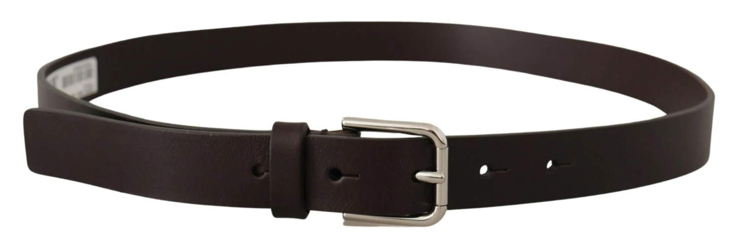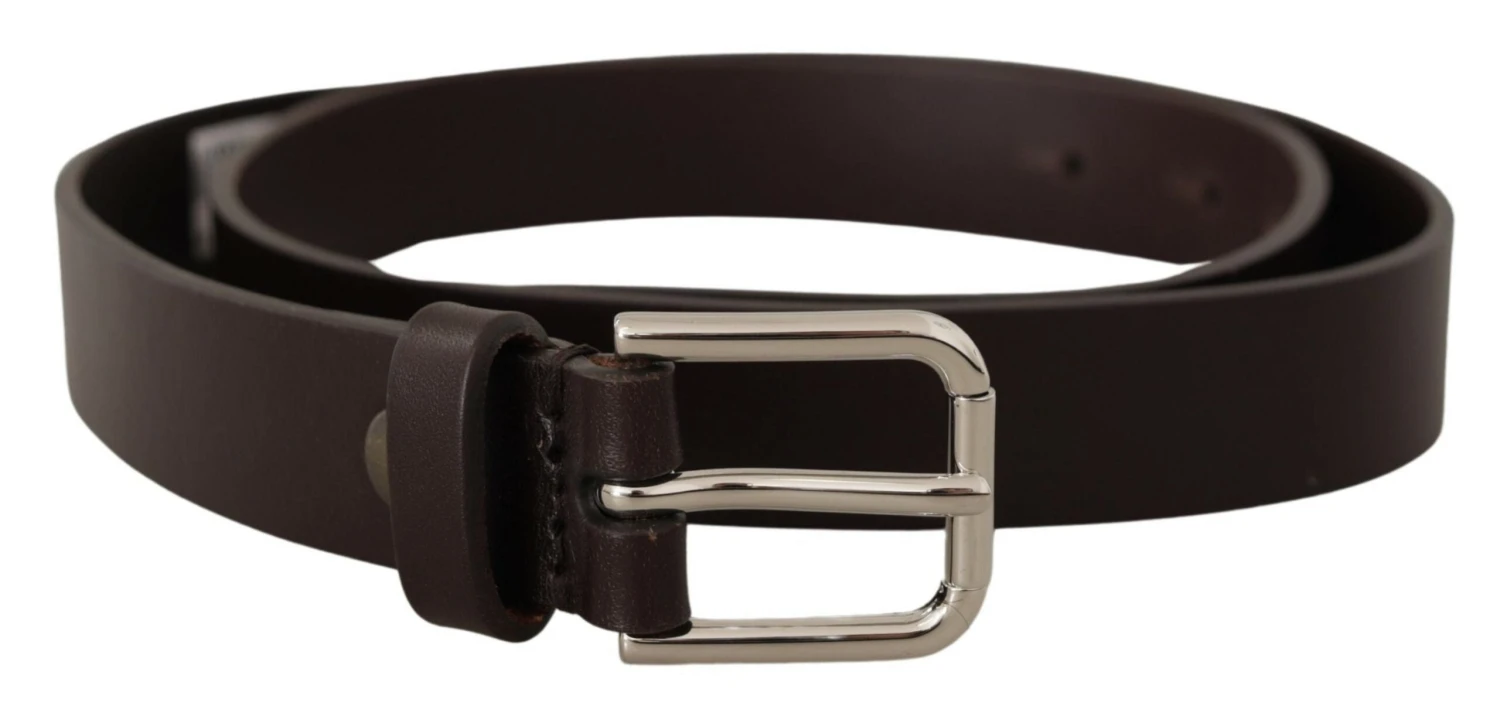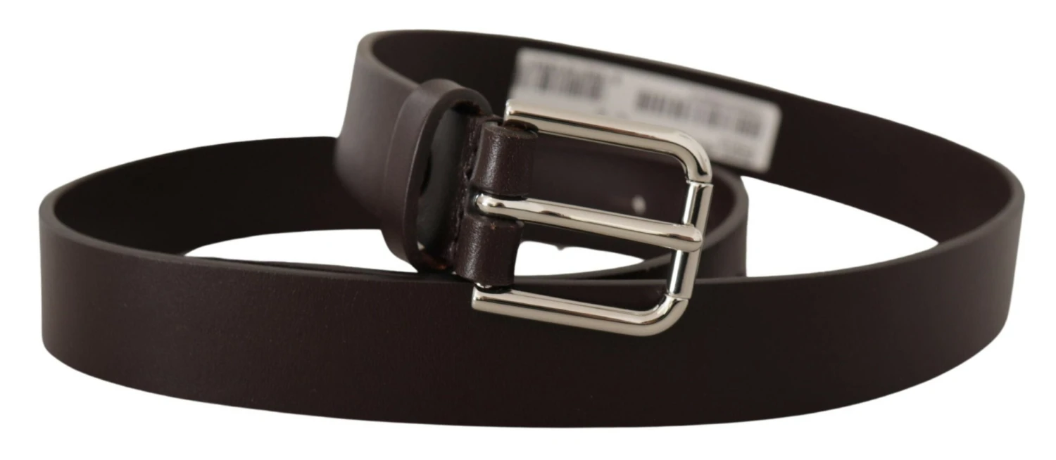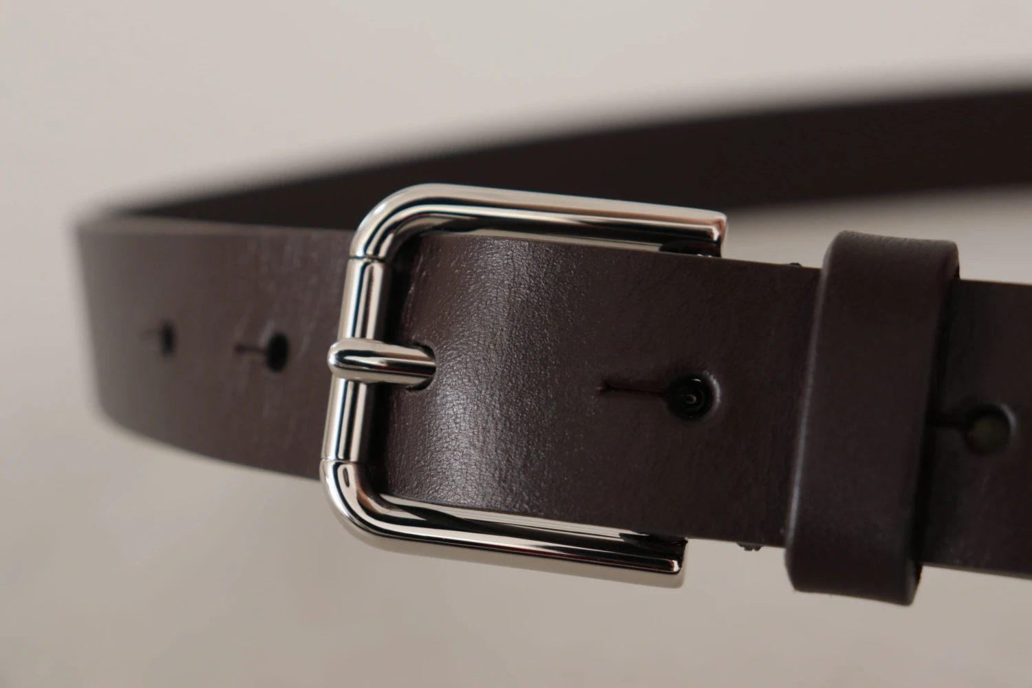 Dolce & Gabbana Men’s Brown Plain Leather Silver Tone Buckle Belt
