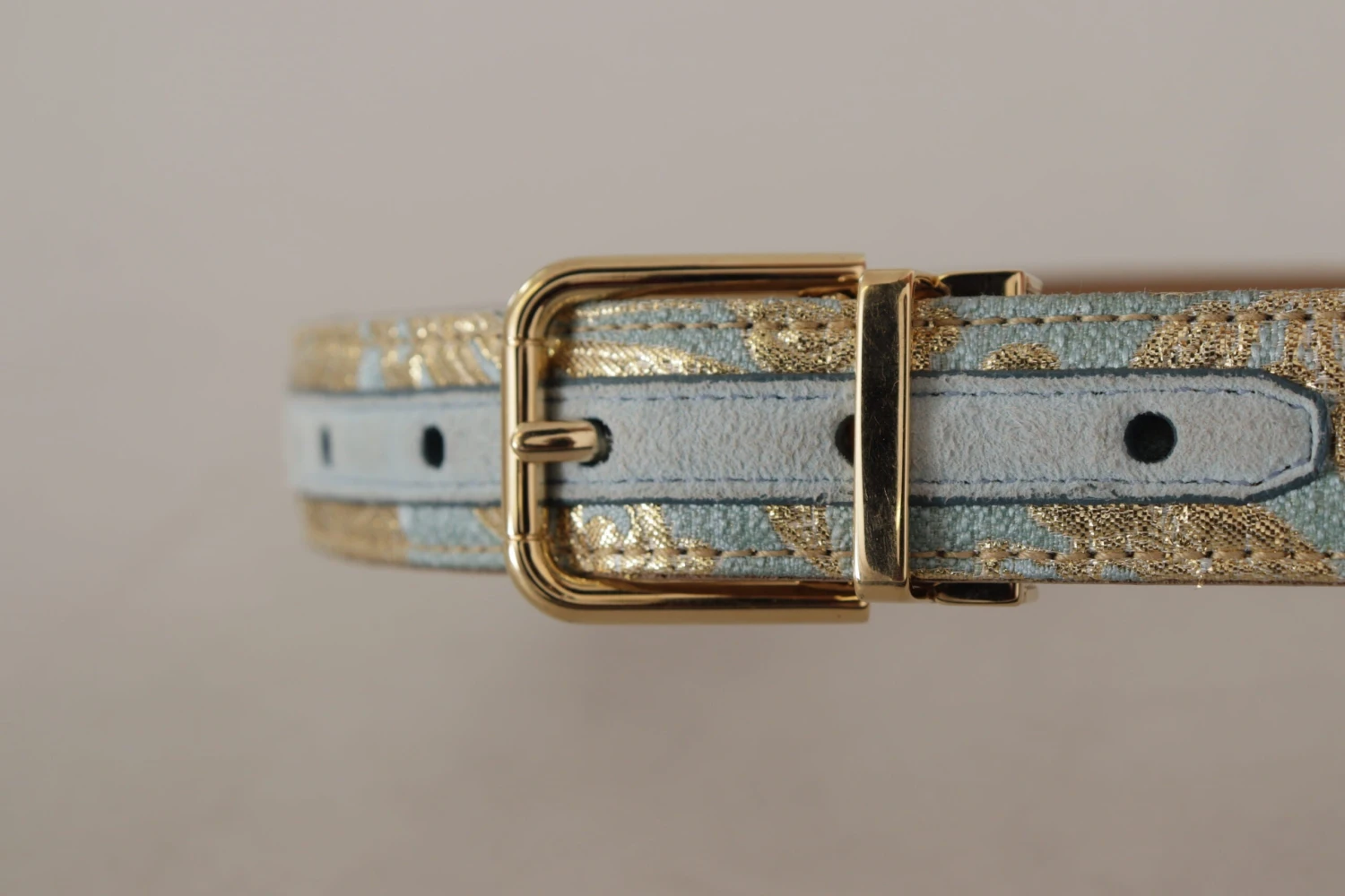 Dolce & Gabbana Women’s Blue Leather Jacquard Embossed Gold Metal Buckle Belt