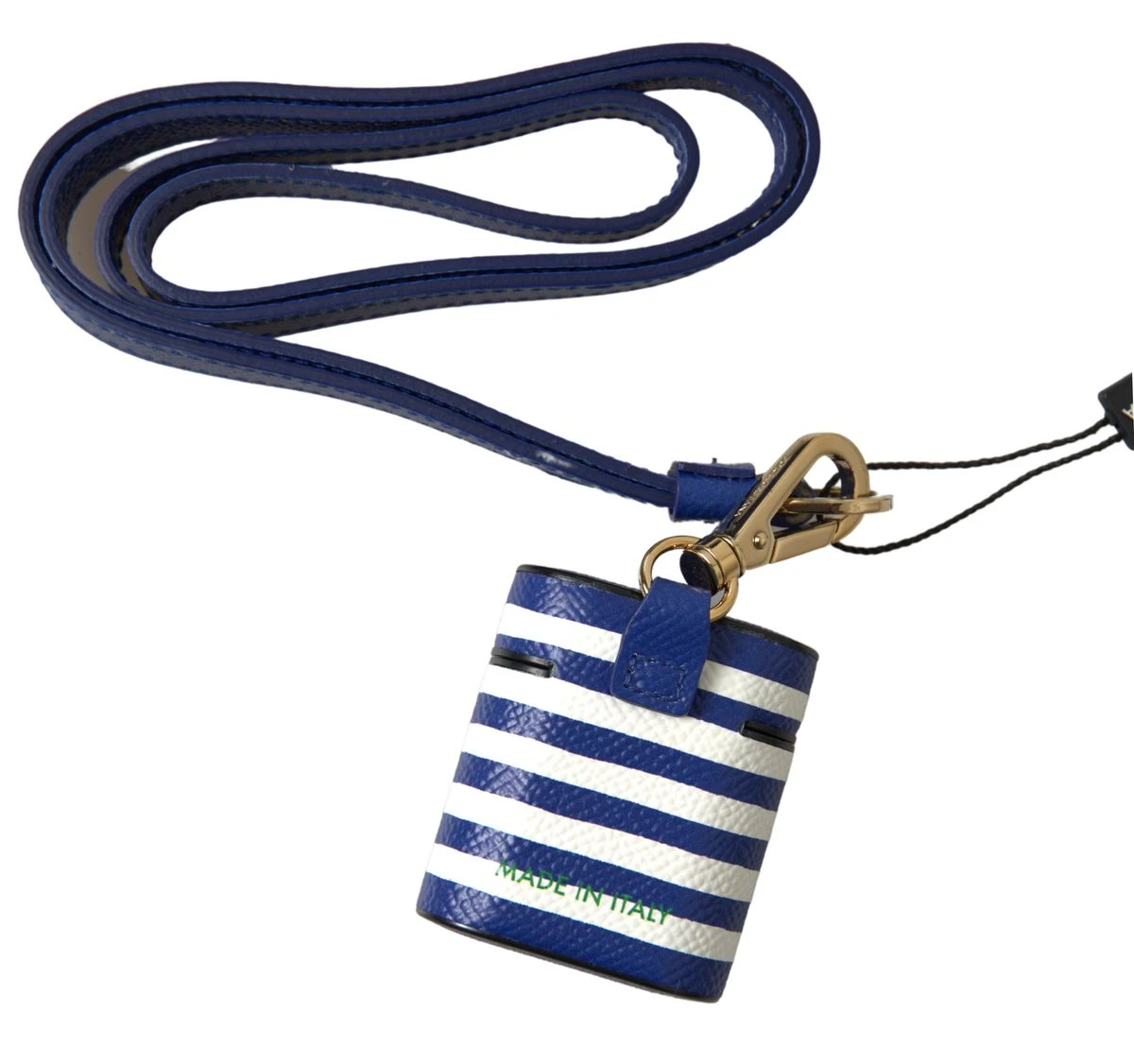 Dolce & Gabbana Women’s Blue Stripe Dauphine Leather Logo Print Strap Airpod Case