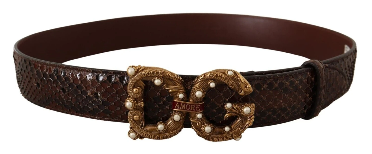 Dolce & Gabbana Women’s Brown Exotic Leather Logo Buckle Amore Belt