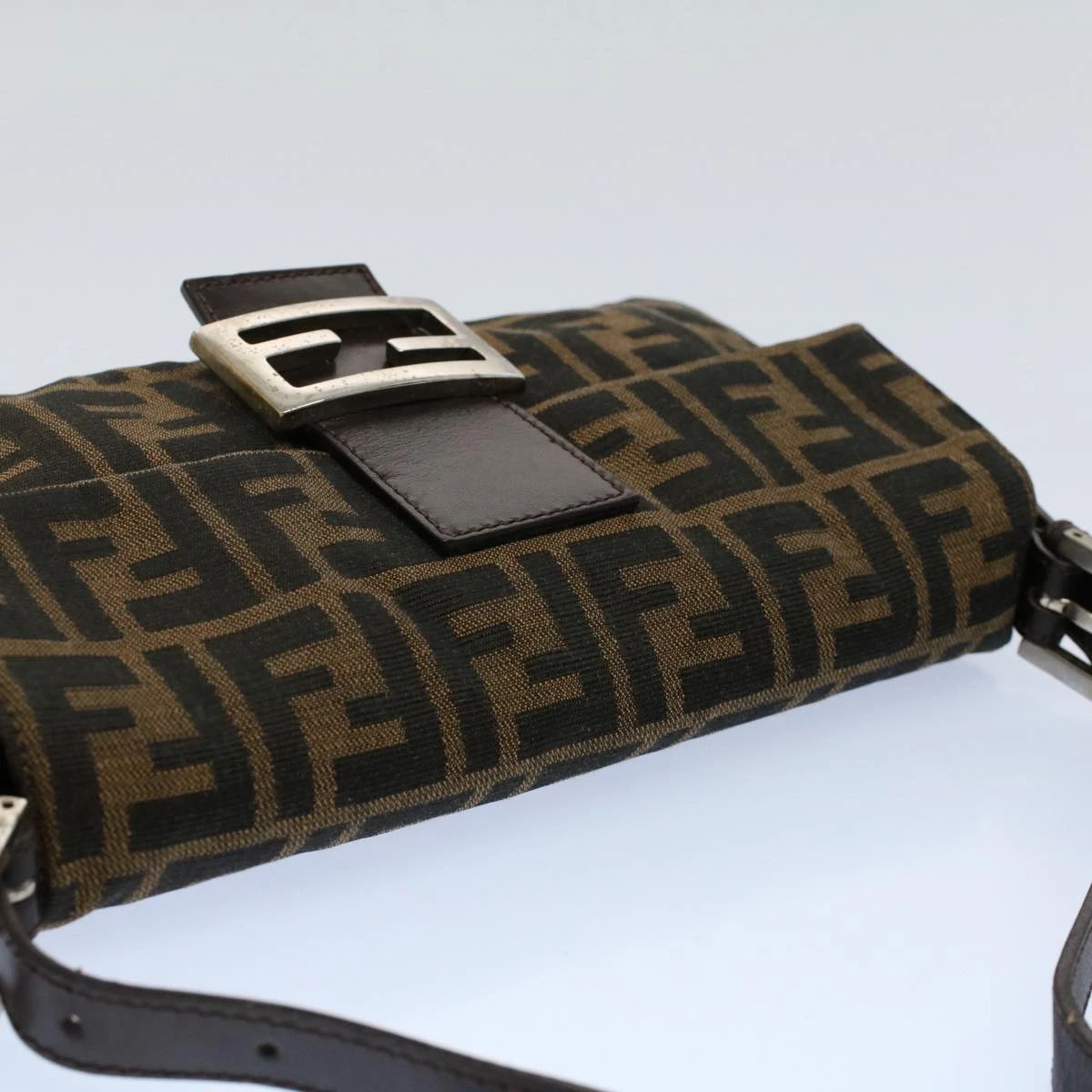FENDI Zucca Canvas Mamma Baguette Shoulder Bag Black Brown Auth Am5065