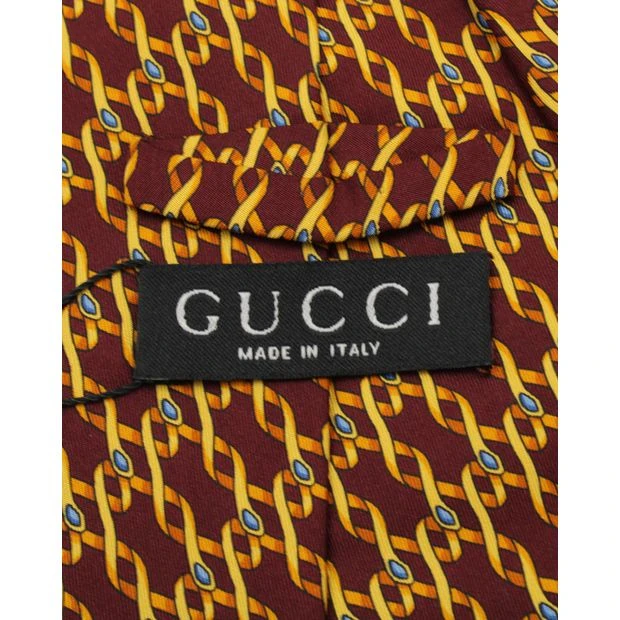 GUCCI Brown, Burgundy And Yellow Print Tie