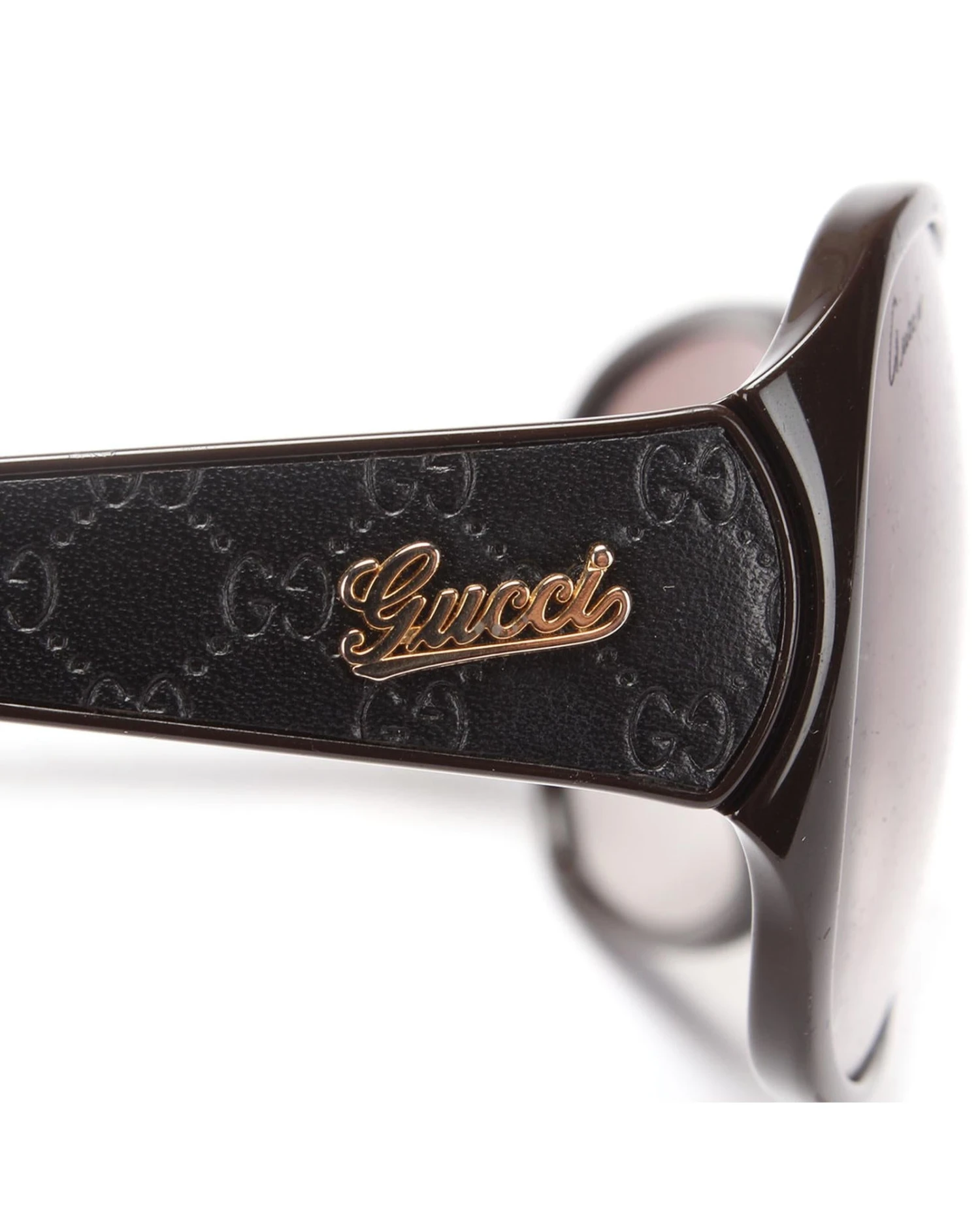 Gucci Oversized Tinted Sunglasses Brown color Tinted lens for sun protection Measurement: 62-16-130 Lightly worn exterior for a vintage look Perfect for women Material: Plastic