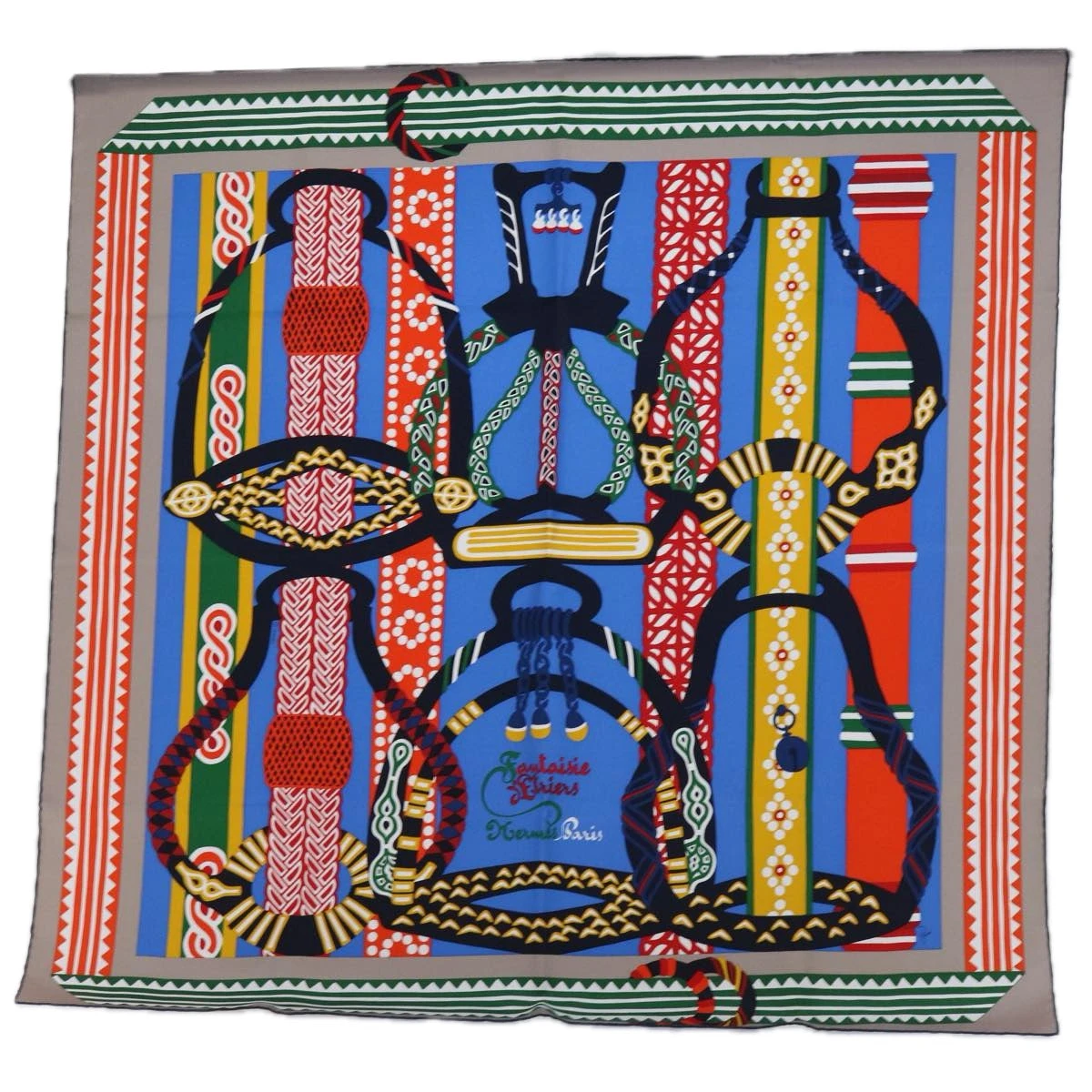 Hermes Carre 90 Fantaisie D�fetriers Scarf Silk Blue Multicolor Auth 60781
