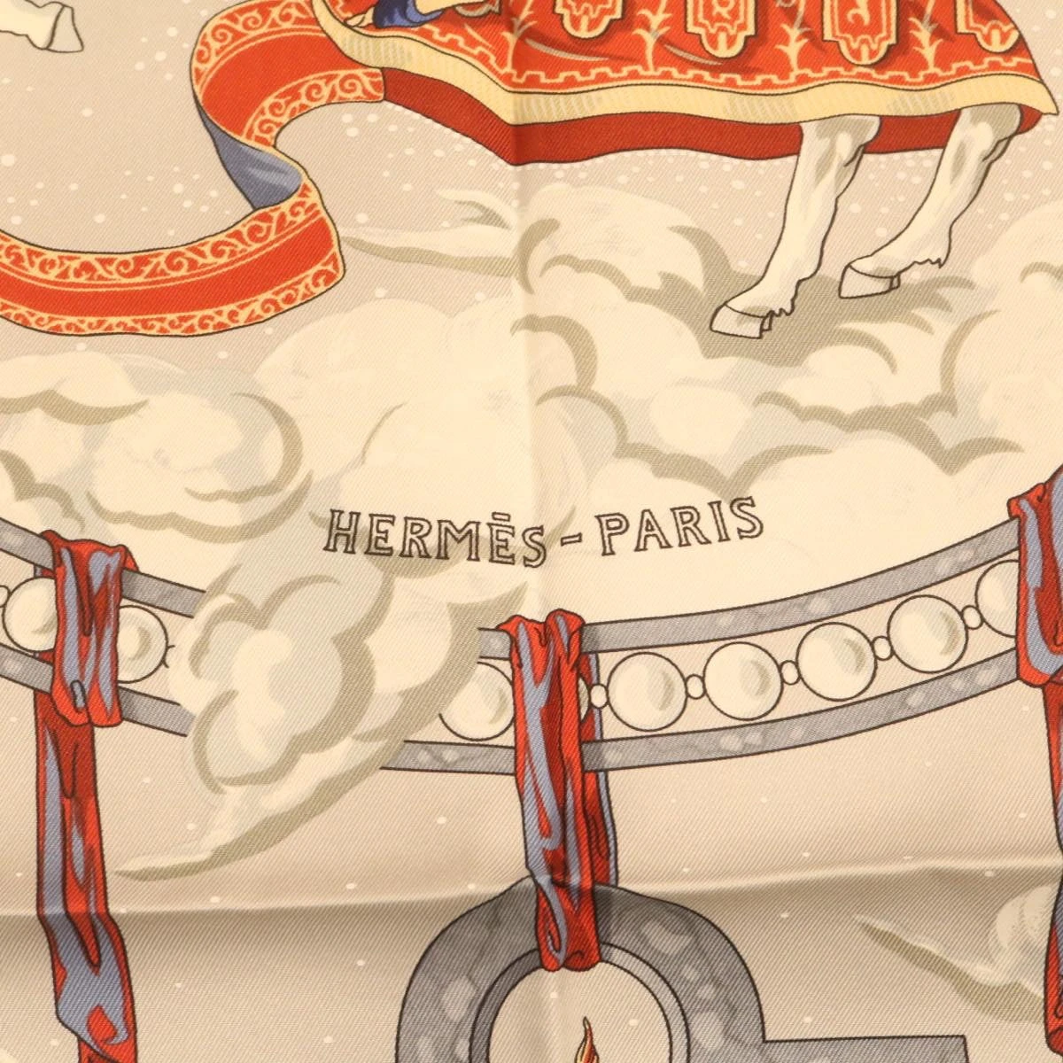 Hermes Carre 90 Scarf Cavaliers Des Nuages Scarf Silk 100% Gray Auth Am351b